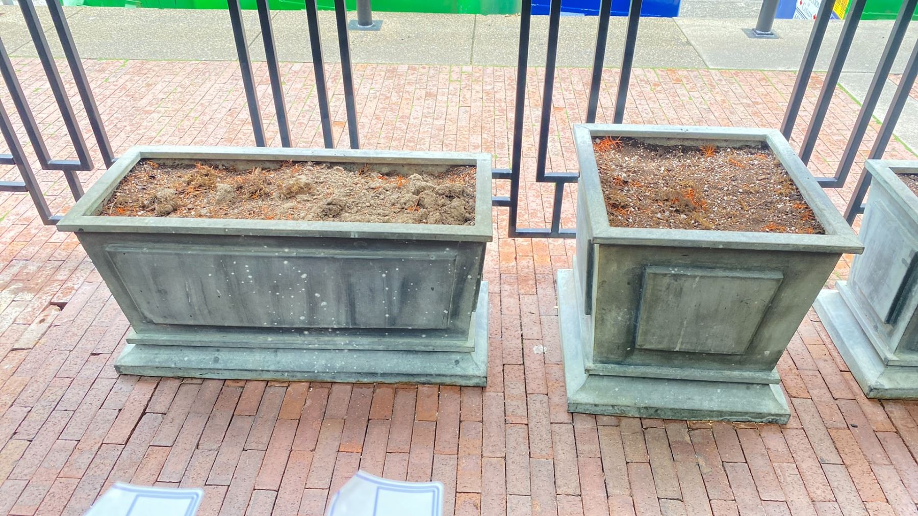 22  SQUARE METAL COMMERCIAL OUTDOOR PLANTER & 39 L X 16  X 20 H RECTANGULAR METAL OUTDOOR PLANTER
