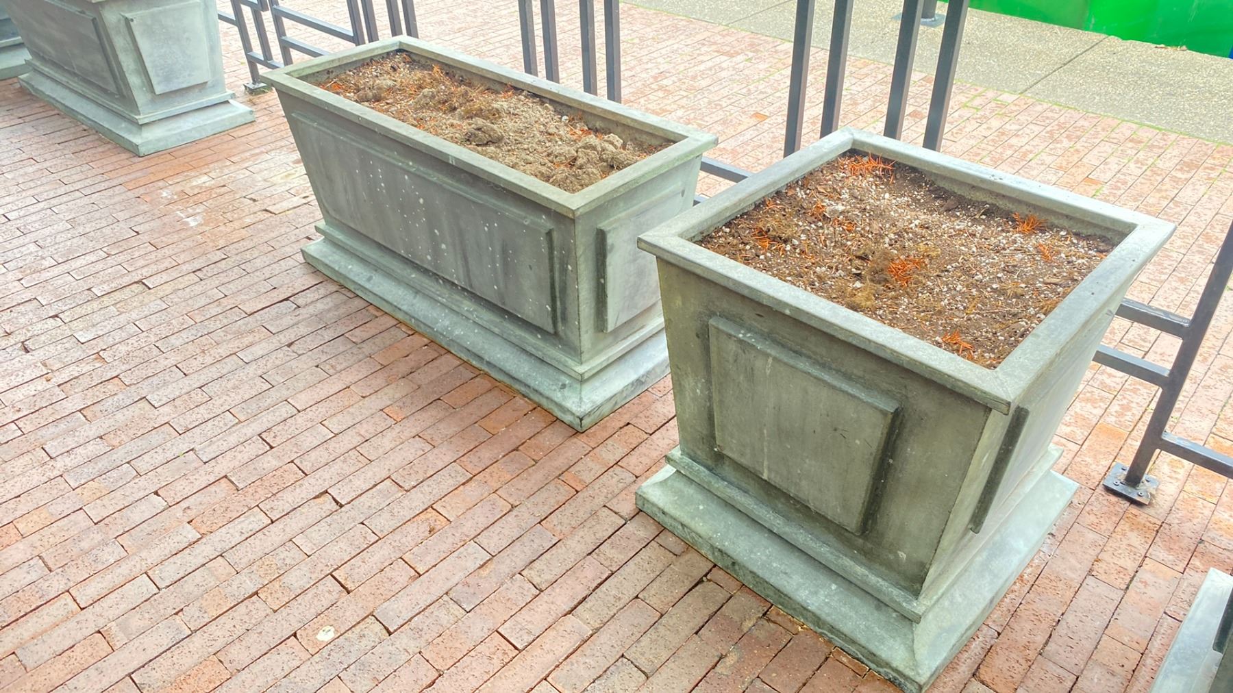 22" SQUARE METAL COMMERCIAL OUTDOOR PLANTER & 39"L X 16" X 20"H RECTANGULAR METAL OUTDOOR PLANTER