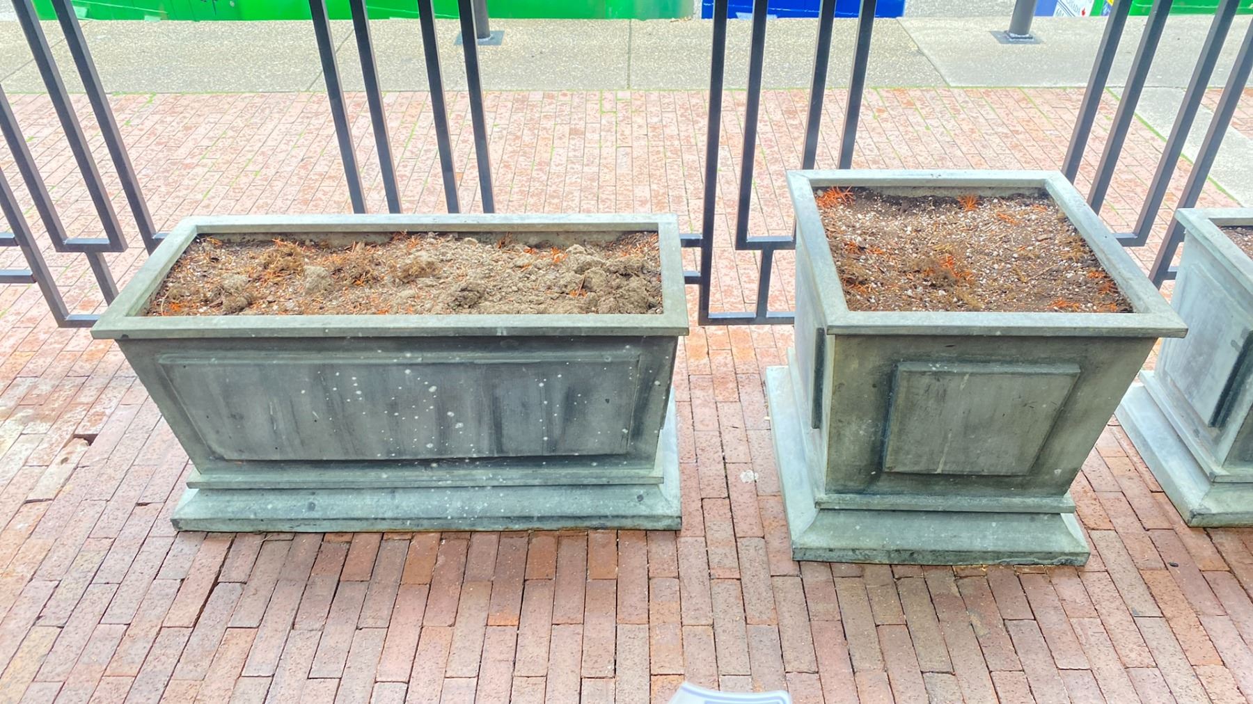 22" SQUARE METAL COMMERCIAL OUTDOOR PLANTER & 39"L X 16" X 20"H RECTANGULAR METAL OUTDOOR PLANTER
