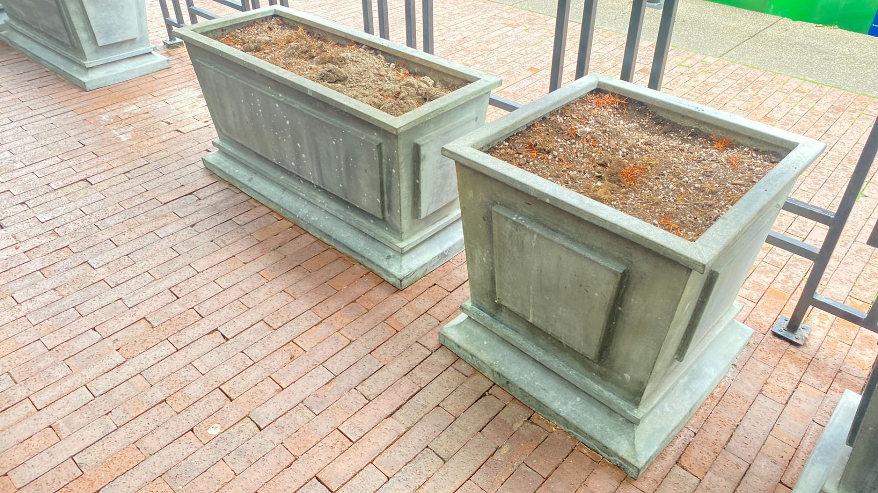 22  SQUARE METAL COMMERCIAL OUTDOOR PLANTER & 39 L X 16  X 20 H RECTANGULAR METAL OUTDOOR PLANTER