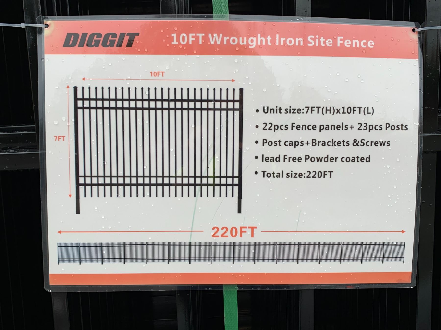 22PCS DIGGIT 10FT WROUGHT IRON SITE FENCING ( 220FT TOTAL )