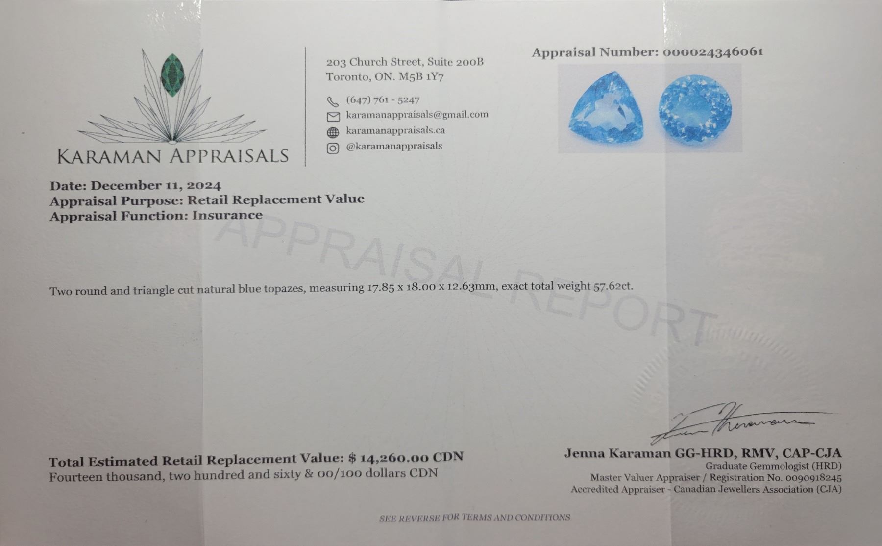23.6 CT CERTIFIED SWISS BLUE TOPAZ GEMSTONE ($4,035 APPRAISAL) - **APPRAISAL NOT GUARANTEED**