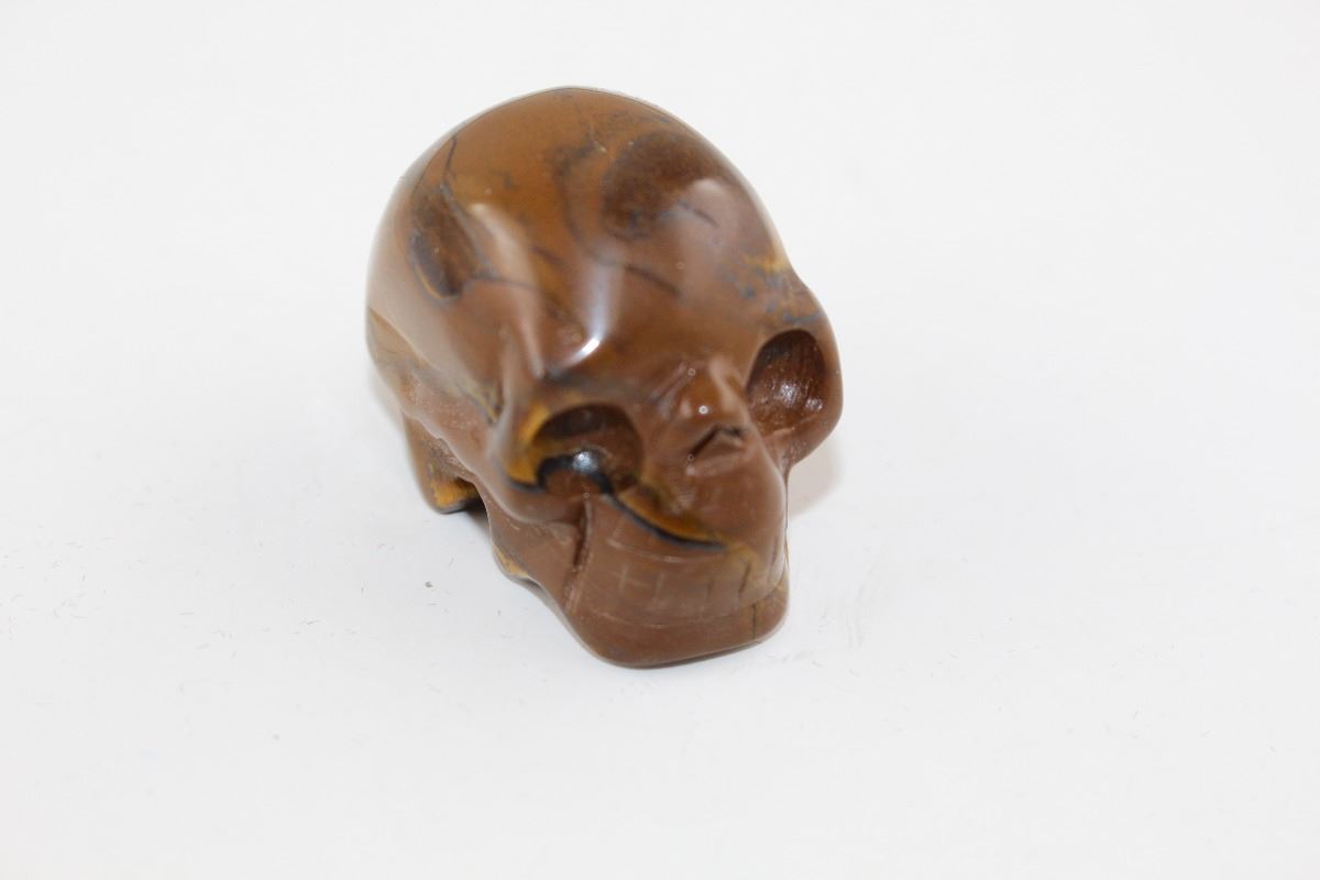 238CT CARVED TIGER'S EYE SKULL GEMSTONE, APPROX 1" X 1.5"