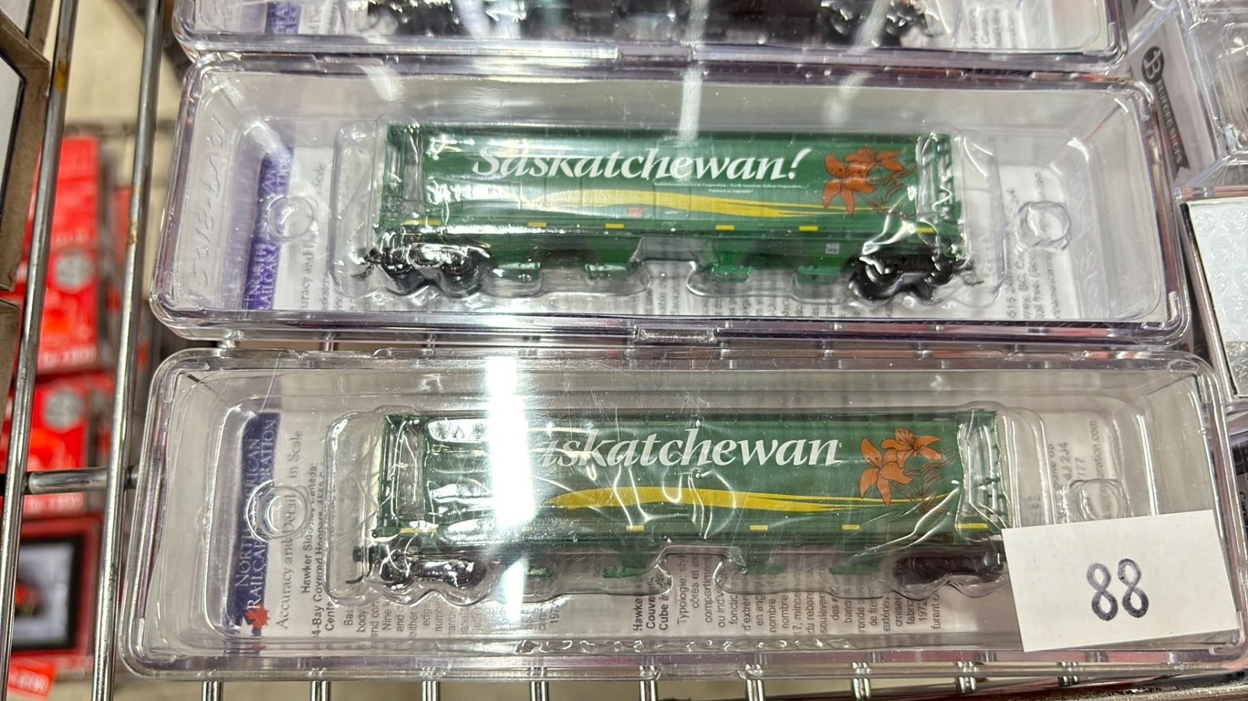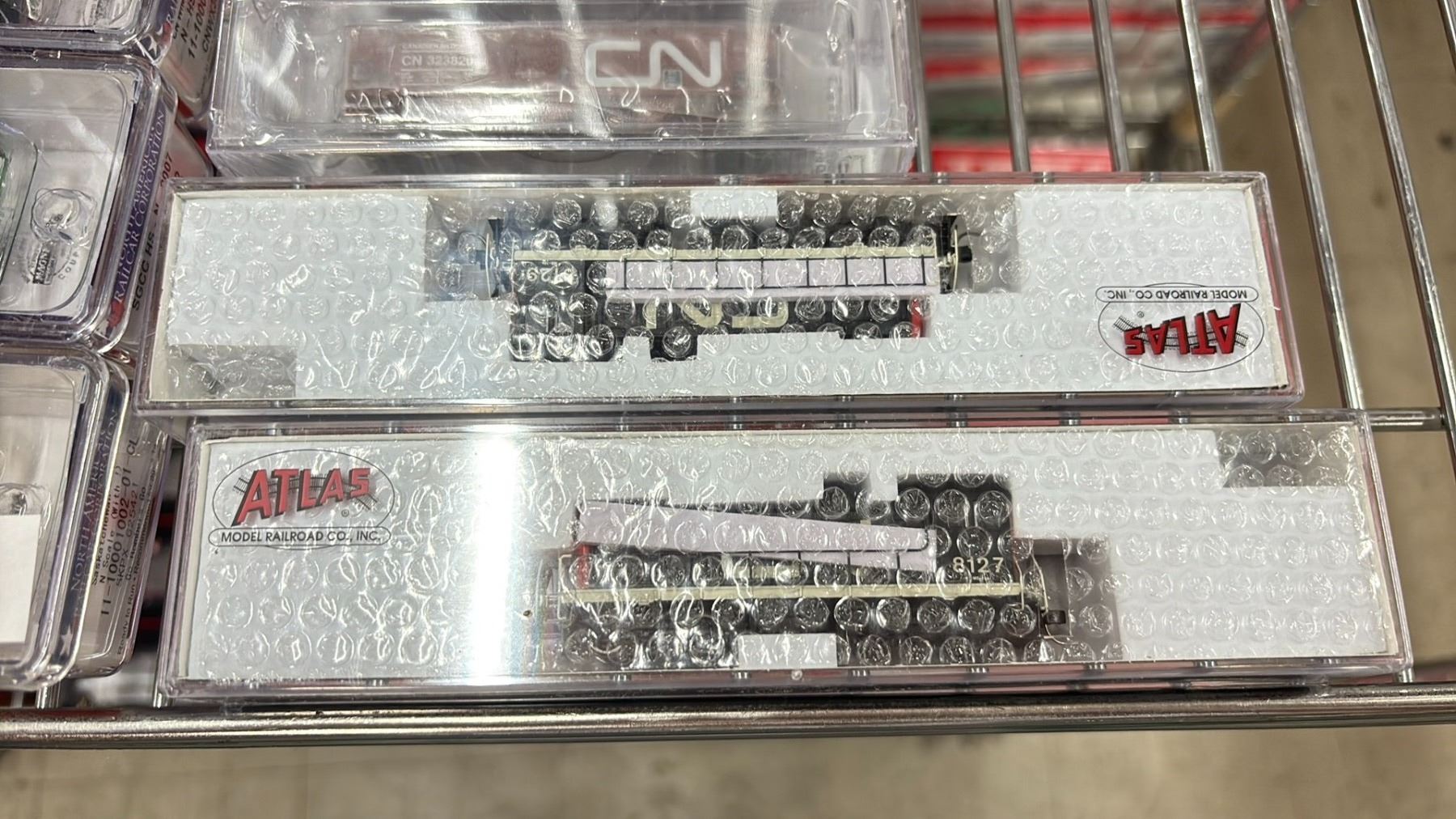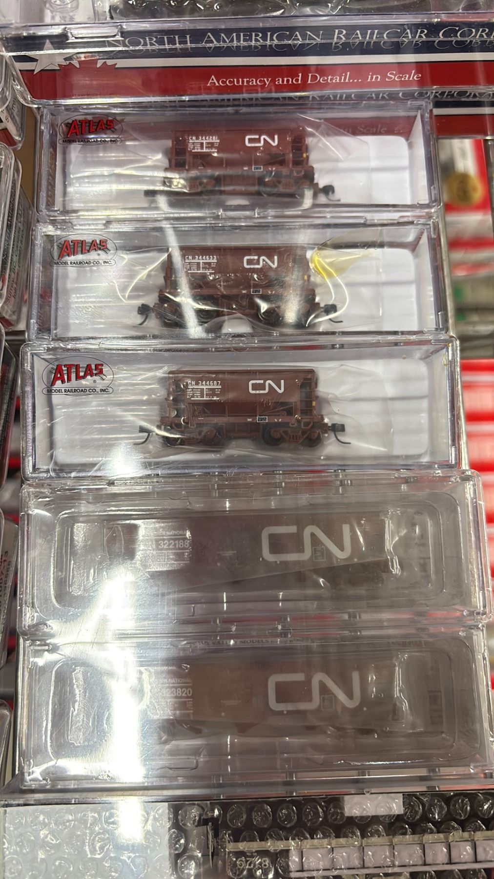 (24) ASSORTED MODEL TRAINS INCLUDING; NORTH AMERICAN RAILCAR CORPORATION 4-BAY CYLINDRICAL HOPPERS, ATLAS N MASTER LINE LOCOMOTIVE GOLD SERIES ALCO S-2, ATLAS N SCALE TRAINMAN 70 TON ORE CAR CANADIAN NATIONAL & MORE