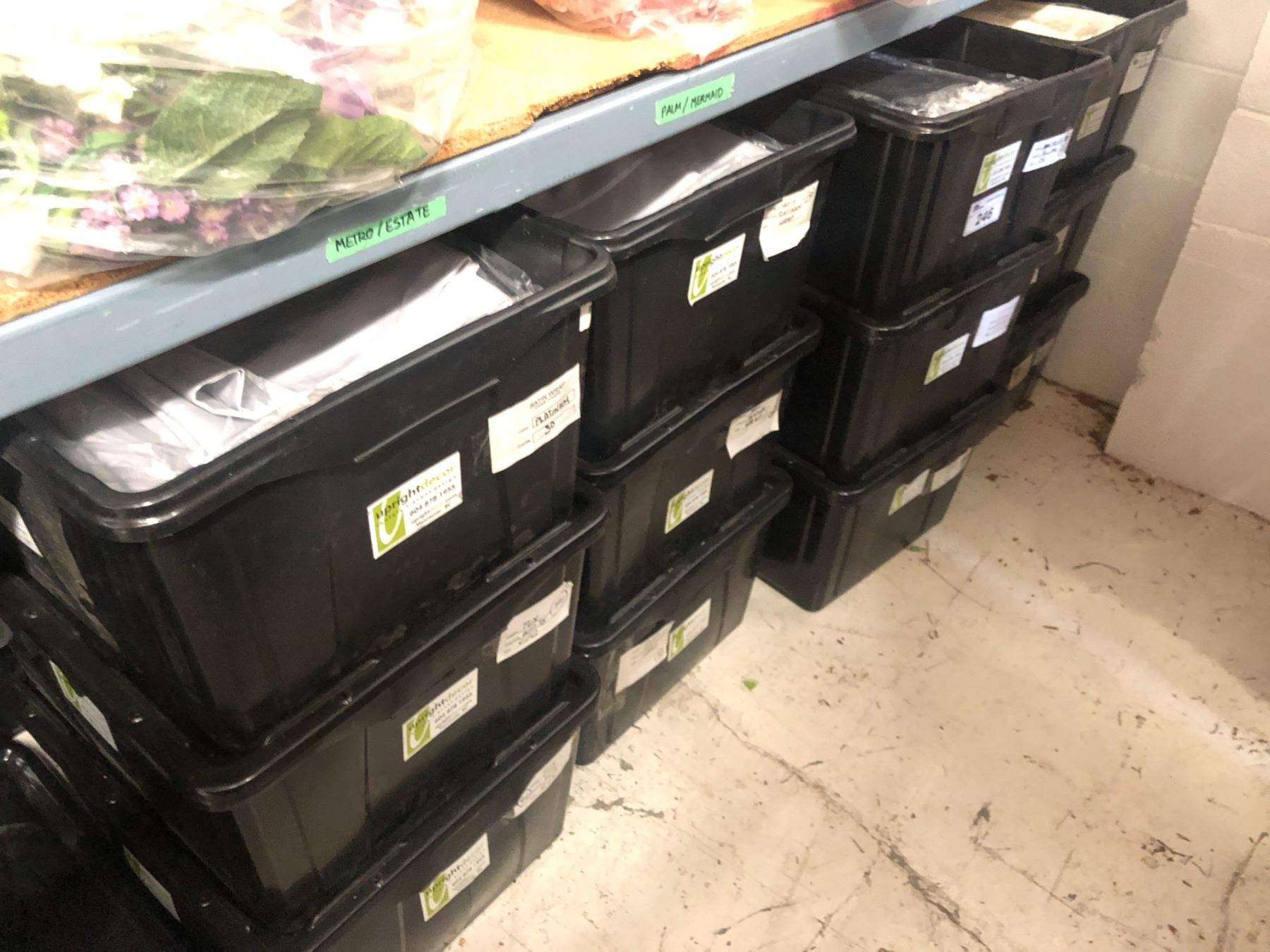 24 BINS OF ASSORTED LINENS, SHAPE/SIZE VARY BETWEEN BINS, COLOURS/PATTERNS INC. PLATINUM, TUX,
