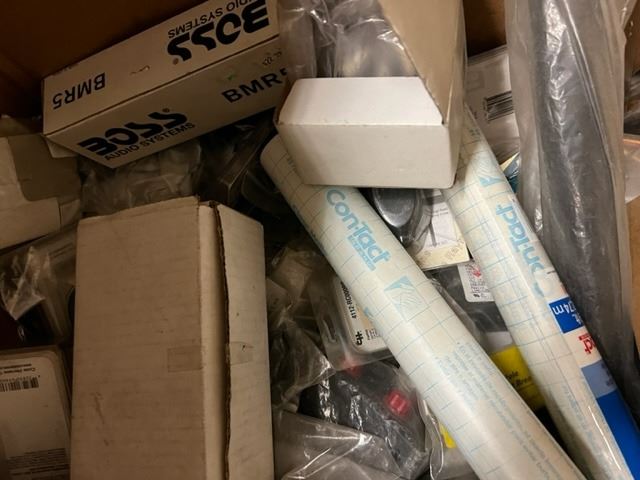 24" BOOKSHELF WITH CONTENTS PLUS LARGE BOX SPECIALTY MARINE PARTS
