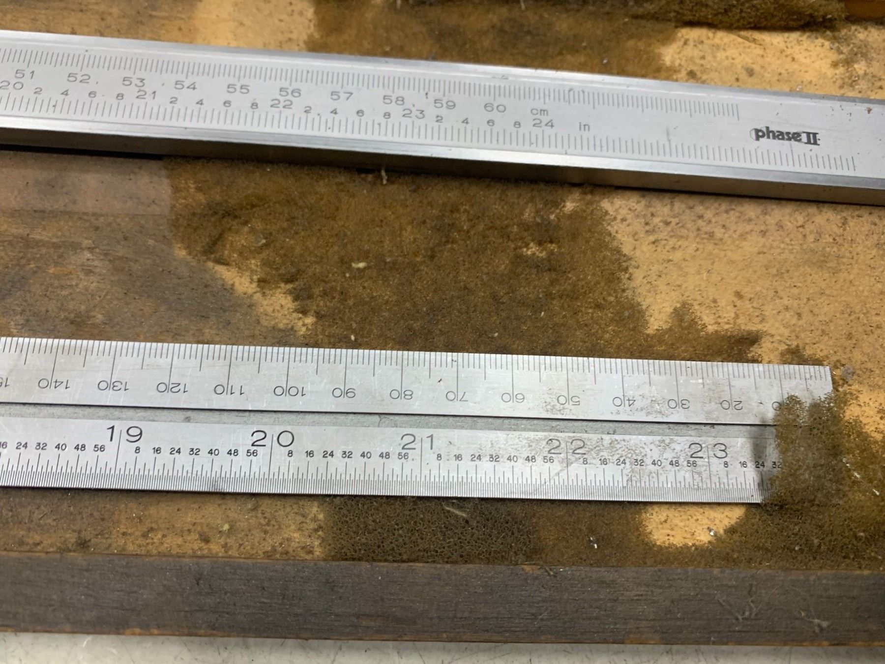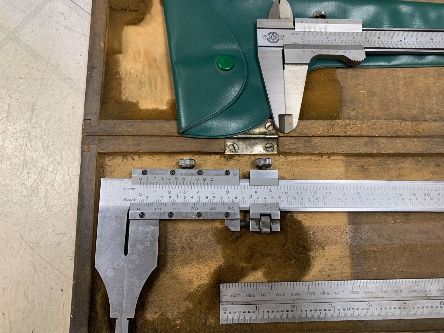 24" CALIPER WITH WOODEN CASE, 12" CALIPER AND 24" MITUTOYO RULER