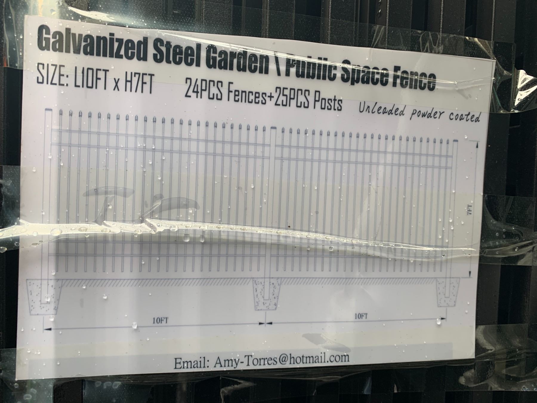 24 PCS OF BLACK GALVANIZED STEEL 10FT X 7FT GARDEN/PUBLIC SPACE FENCING WITH POSTS