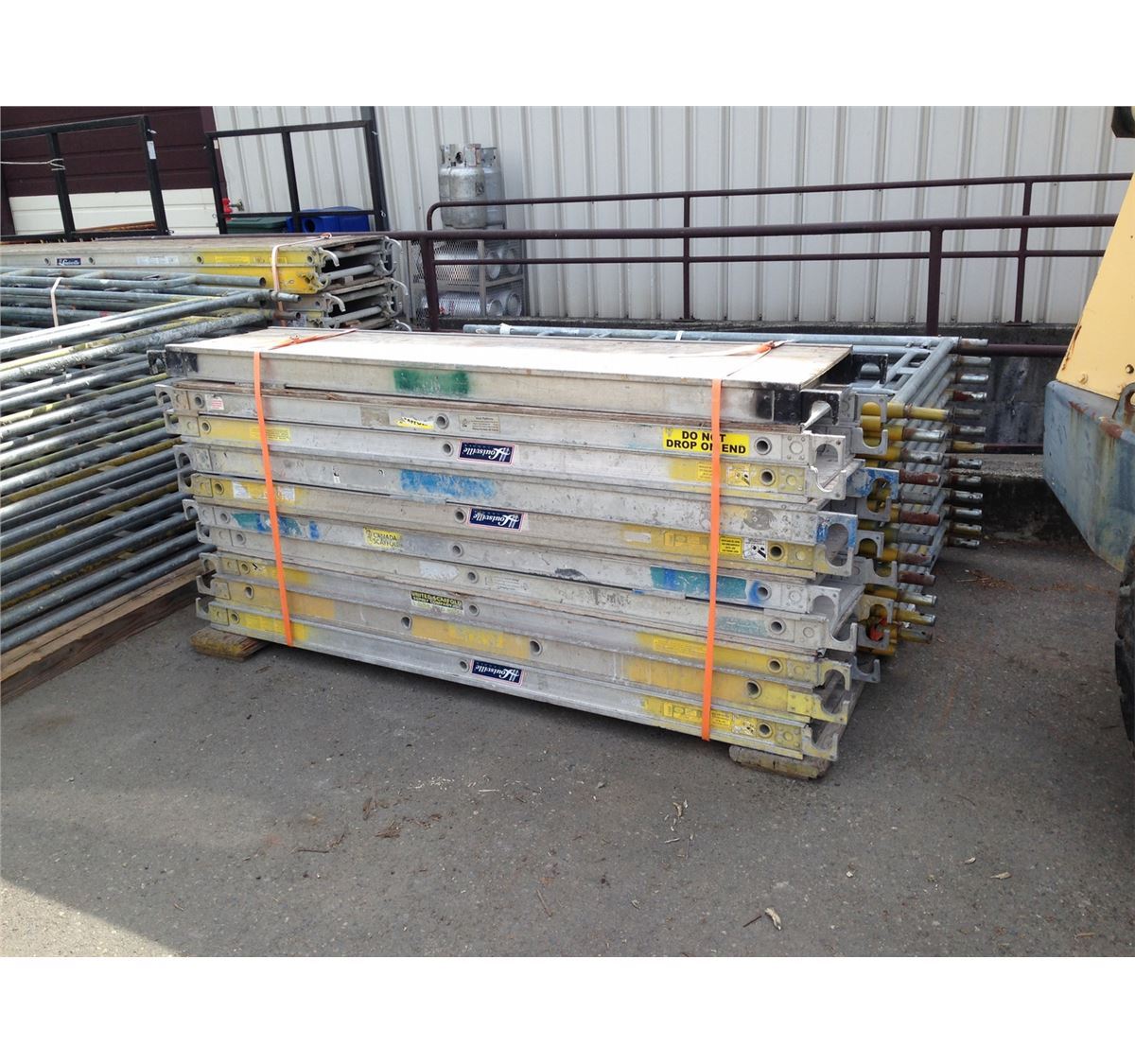 25 - 3' SCAFFOLDING FRAMES WITH 10 - 7' WORK PLATFORMS AND 1 BUNDLE OF 8' CROSSBARS