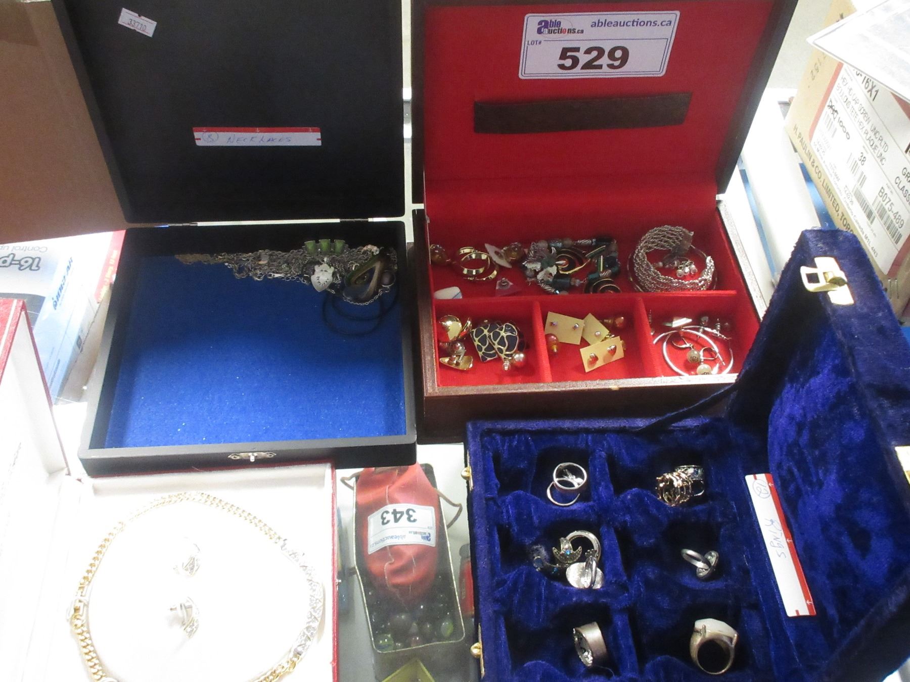 25 PIECES OF JEWELLERY IN BOX/8 NECKLACES/12 RINGS/NECKLACE & EARRING SET (B1)