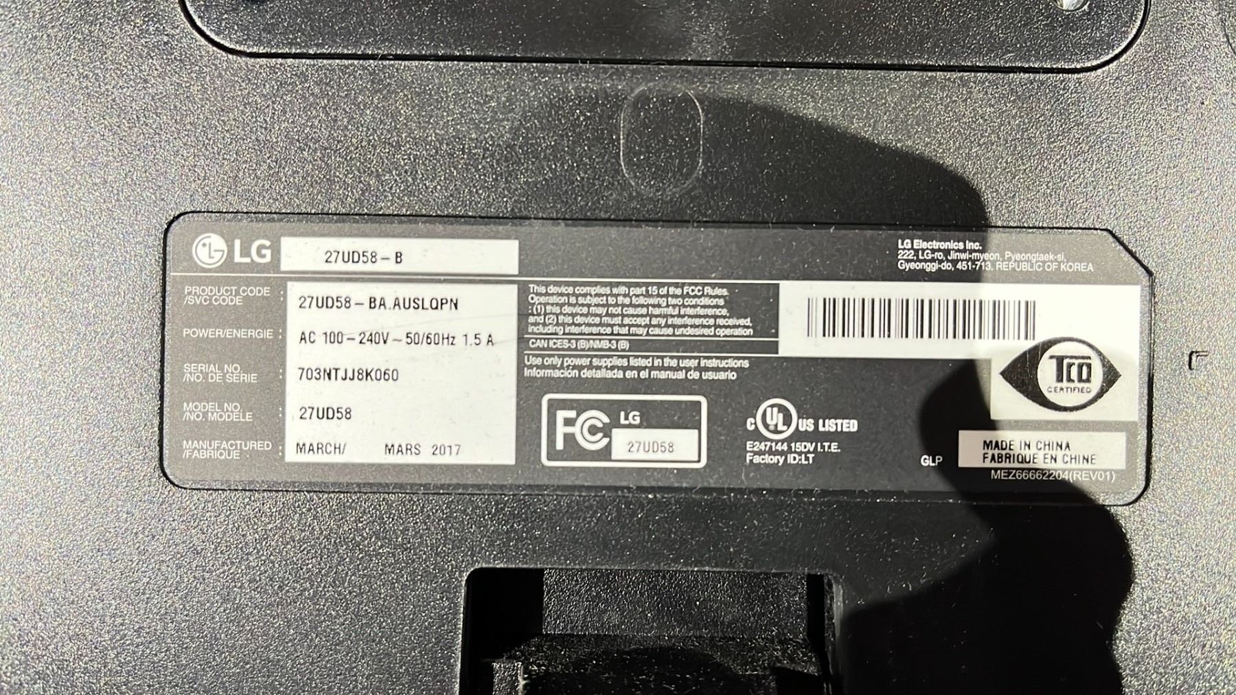 27  LG ULTRA HD 4K MONITOR MODEL 27UD58