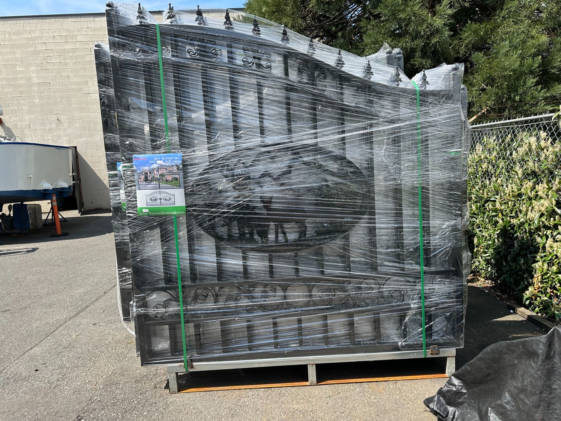 *2P* GREATBEAR BLACK 14' BI-PARTING WROUGHT IRON GATE WITH DEER ARTWORK IN CENTER (DESIGN #1) 91"H TO CENTER ( LEFT & RIGHT SIDE ) 84"W EACH *MUST HAVE PROPER TOOLS / SECOND PERSON FOR REMOVAL*