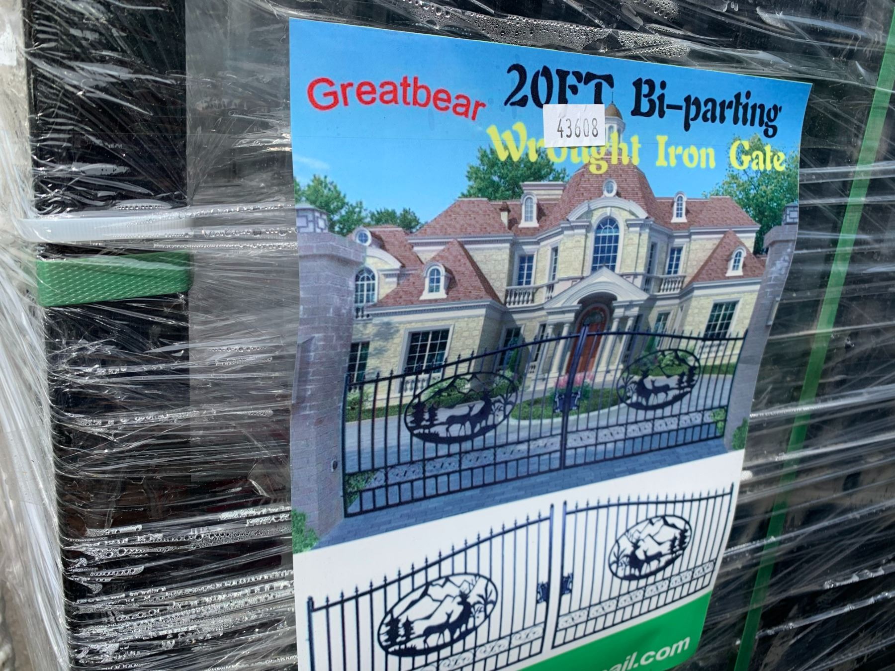 *2P* GREATBEAR BLACK 20' BI-PARTING WROUGHT IRON GATE WITH DEER ARTWORK IN CENTER (DESIGN #1) 91"H TO CENTER ( LEFT & RIGHT SIDE ) 115"W EACH *MUST HAVE PROPER TOOLS / SECOND PERSON FOR REMOVAL*
