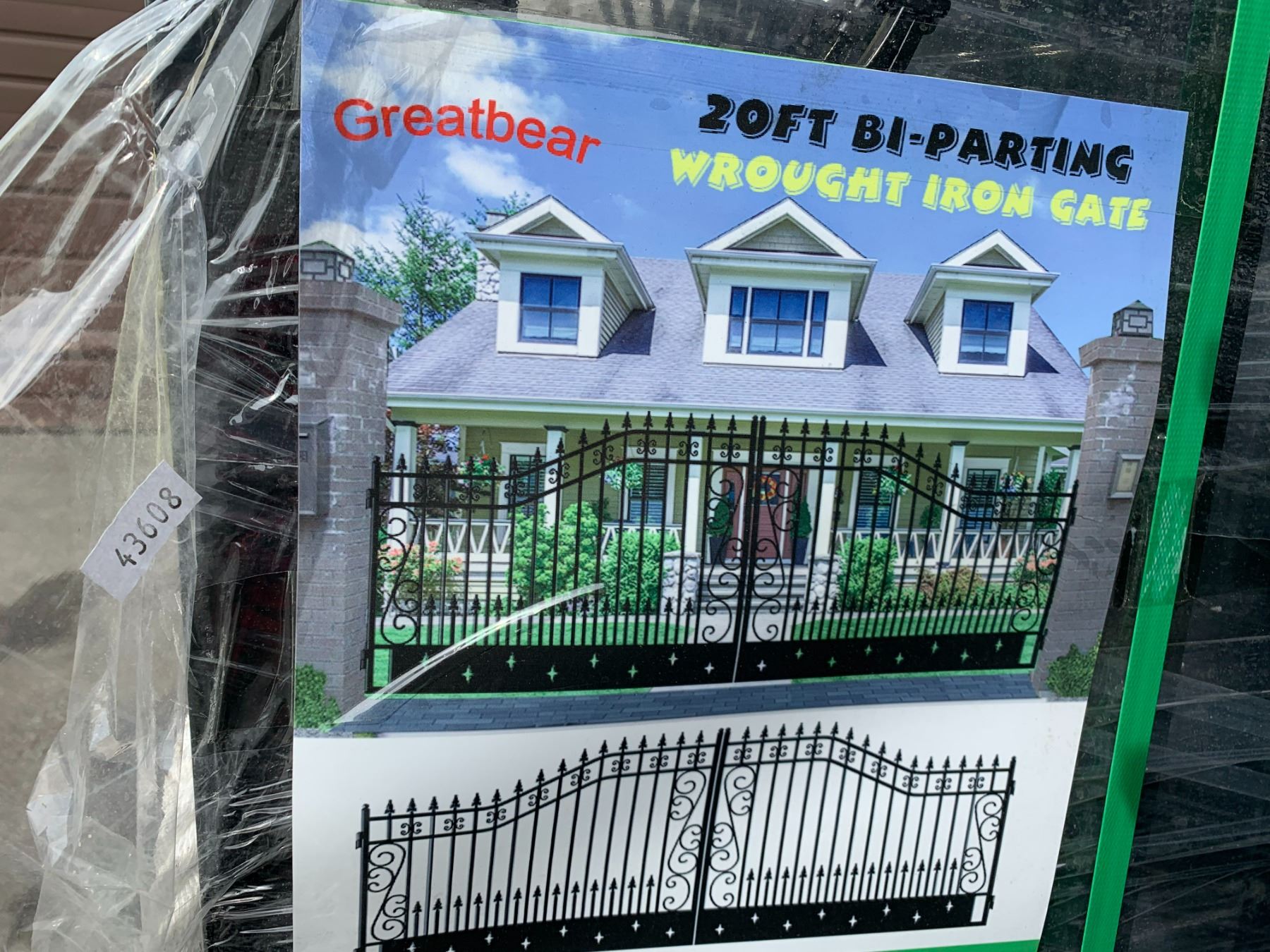 *2P* GREATBEAR BLACK 20' BI-PARTING WROUGHT IRON GATE 91"H TO CENTER ( LEFT & RIGHT SIDE ) 115"W EACH *MUST HAVE PROPER TOOLS / SECOND PERSON FOR REMOVAL*