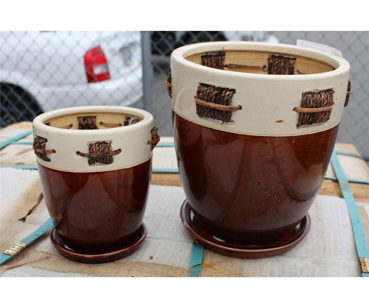 2PC 2 TONE WITH ROPE CORD ACCENT PLANTER SET ( BROWN AND YELLOW, FIRST COME FIRST SERVE)
