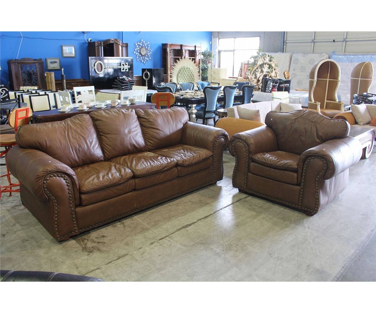 2PC BROWN LEATHER SOFA AND CHAIR SET