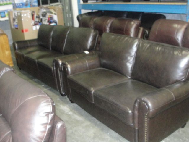 2PC BROWN LEATHER SOFA SET; SOFA AND LOVESEAT