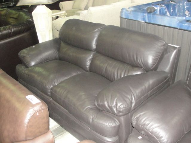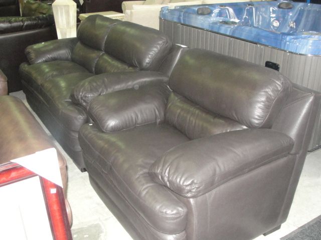 2PC CHARCOAL GREY LEATHER LOVESEAT AND CHAIR SET