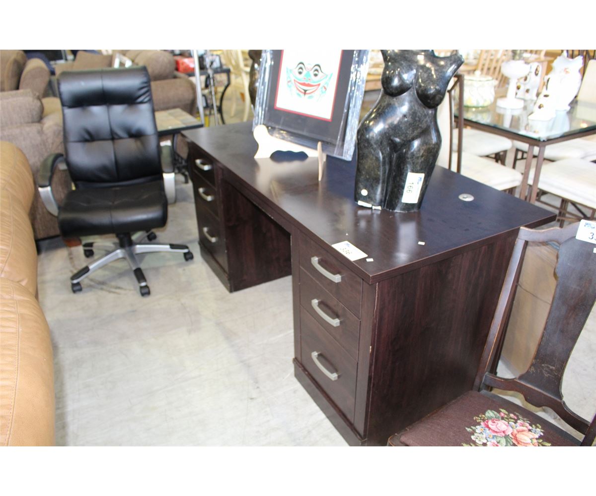 2PC DESK SET; DOUBLE PEDESTAL DESK WITH BLACK GAS LIFT OFFICE CHAIR