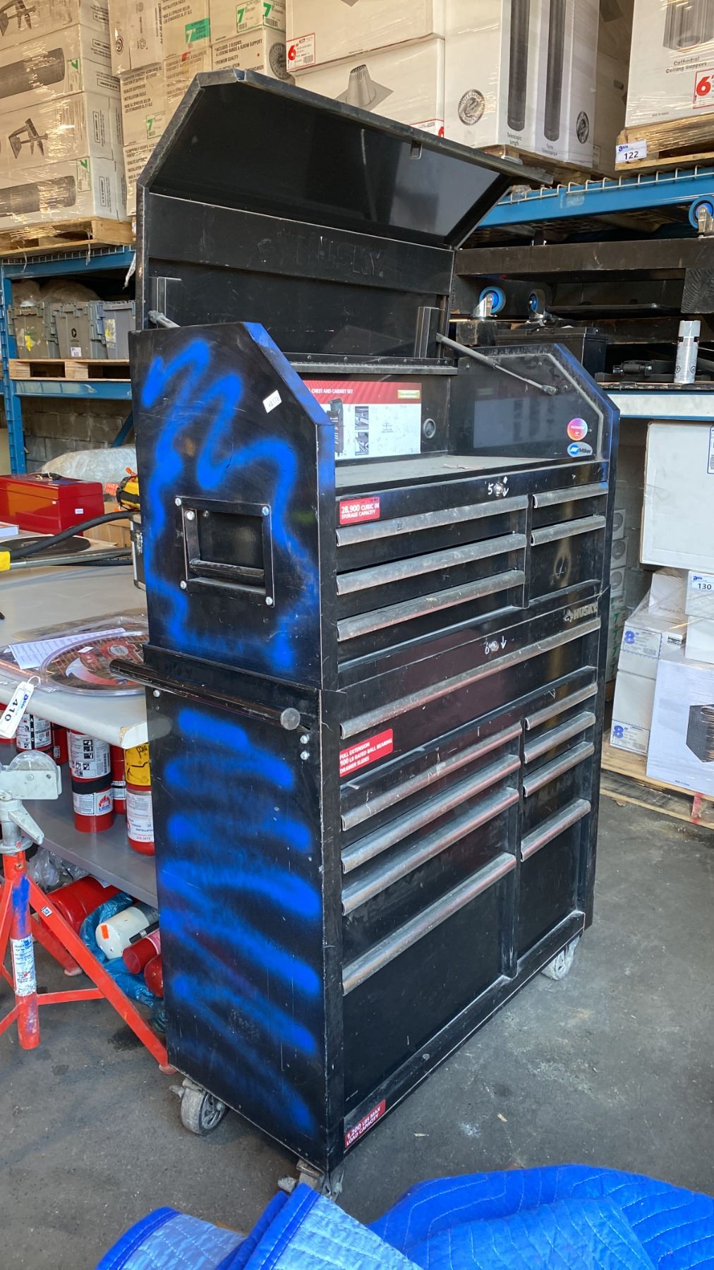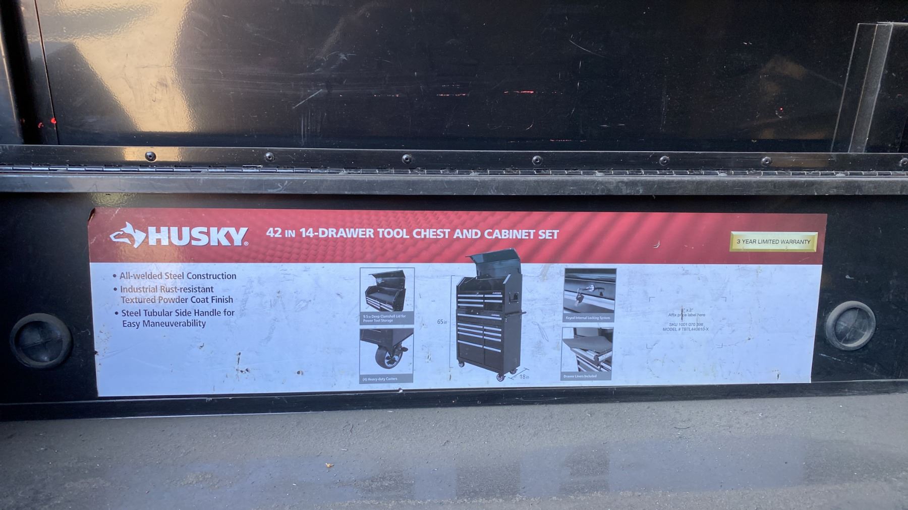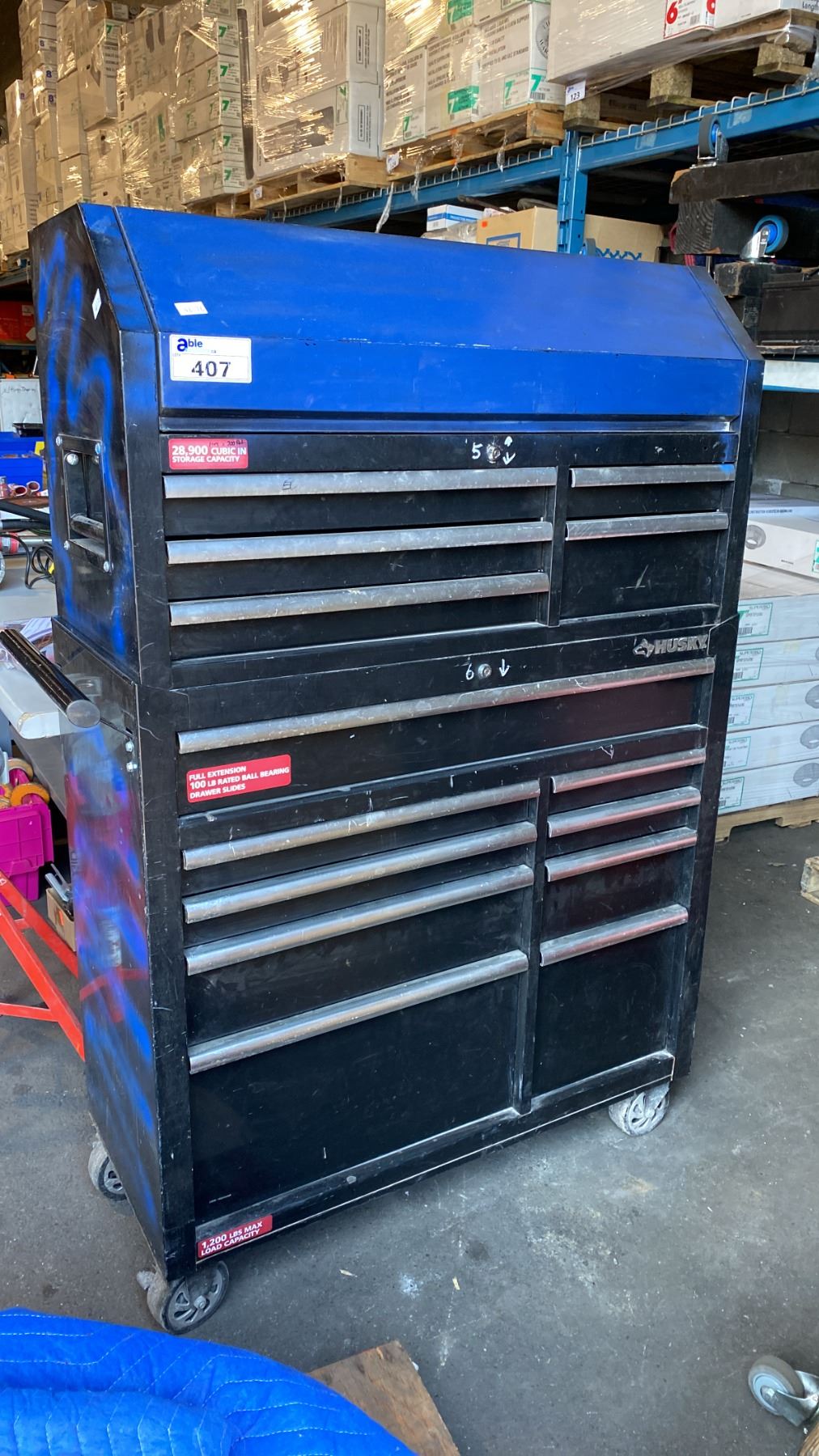 2PC HUSKY BLACK HEAVY DUTY MOBILE 14 DRAWER TOOL CHEST & CABINET SET APPROX 65"H X 18"D X 42"W
