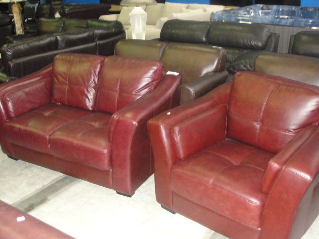 2PC MAROON LEATHER LOVESEAT AND CHAIR SET