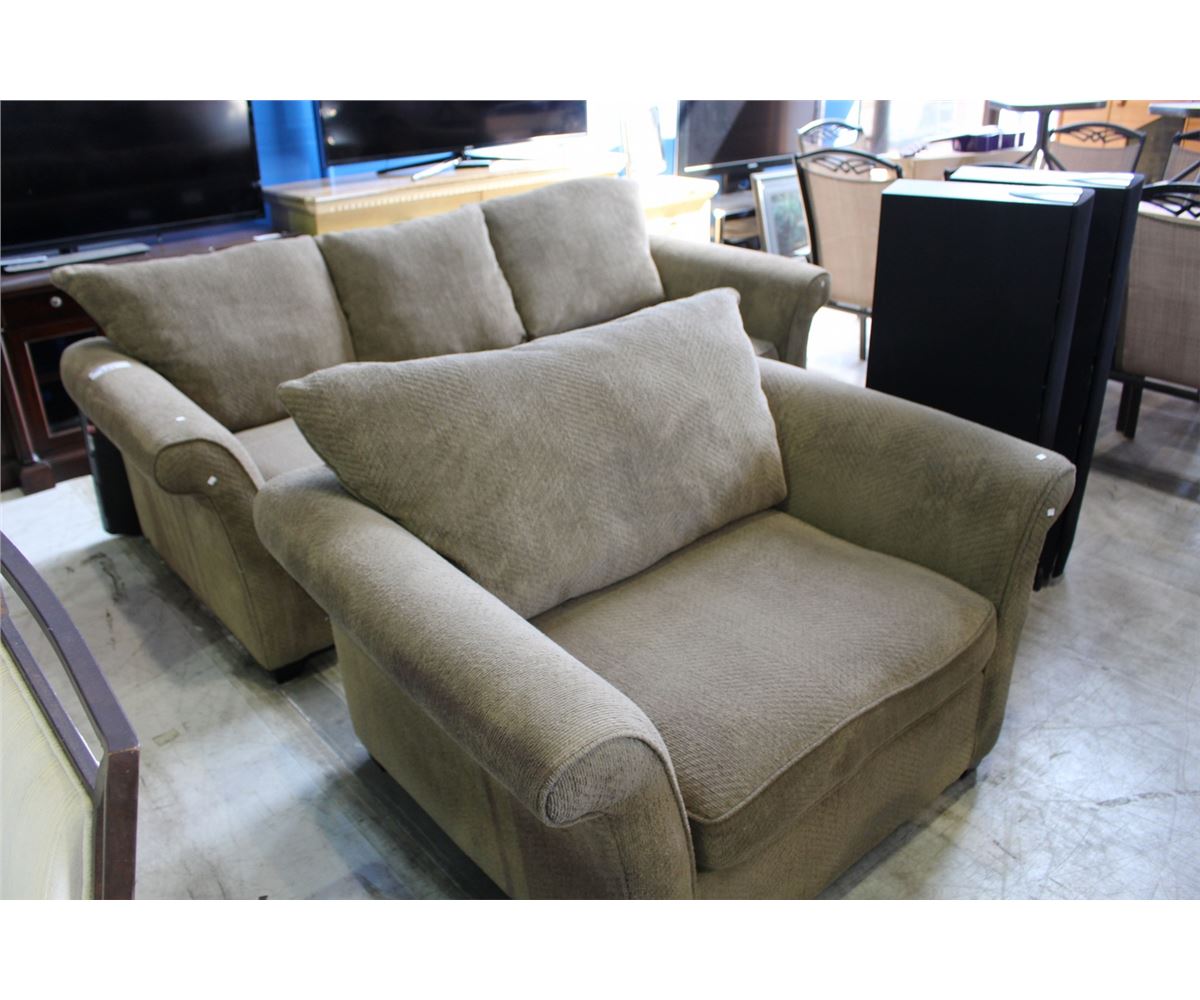 2PC UPHOLSTERED SOFA AND CHAIR SET- GREENISH COLOUR