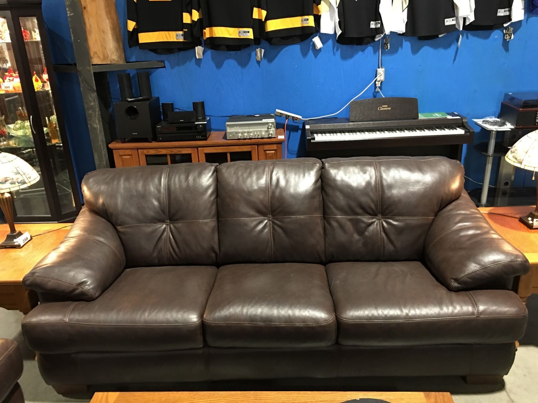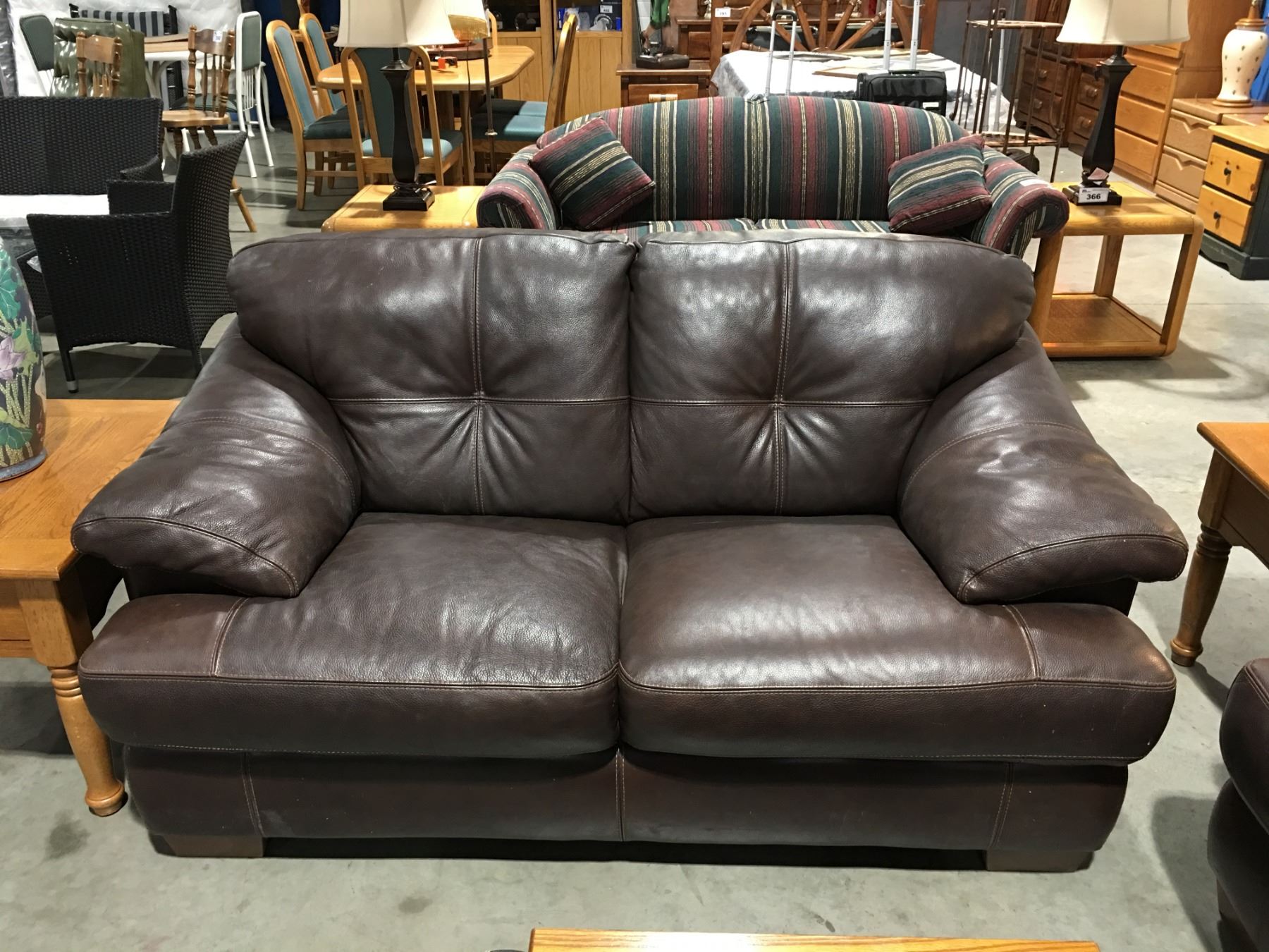 2PCS. BROWN LEATHER SOFA & LOVE SEAT SET