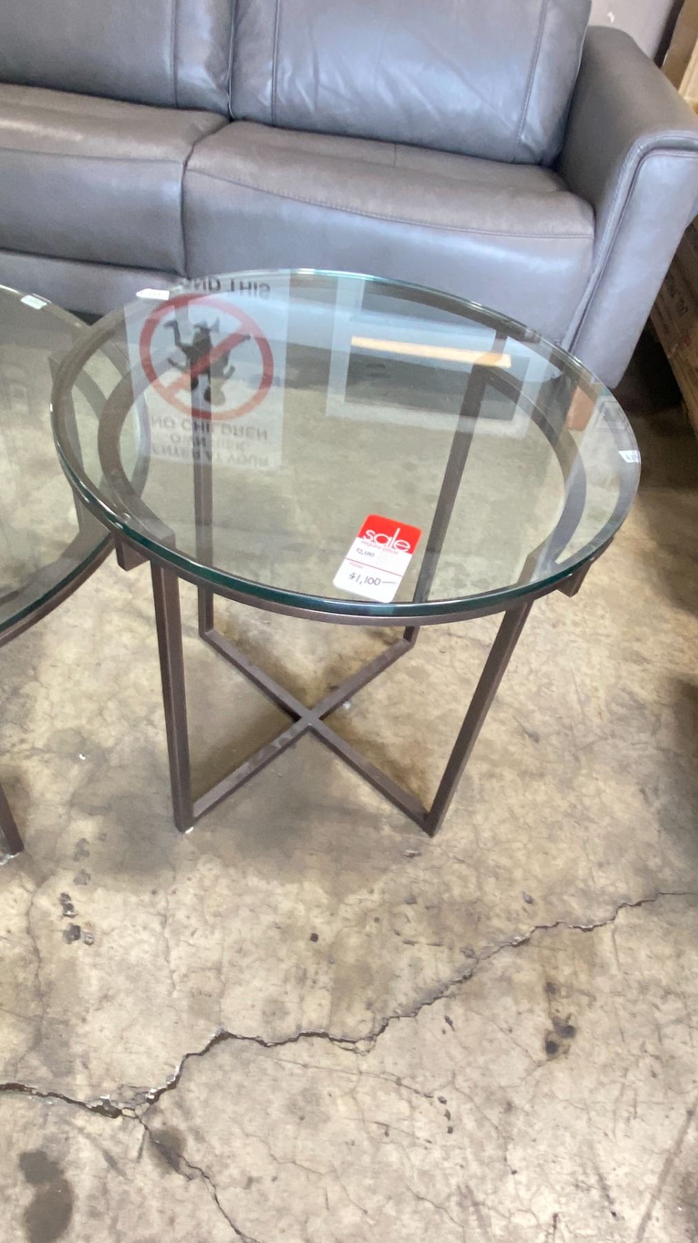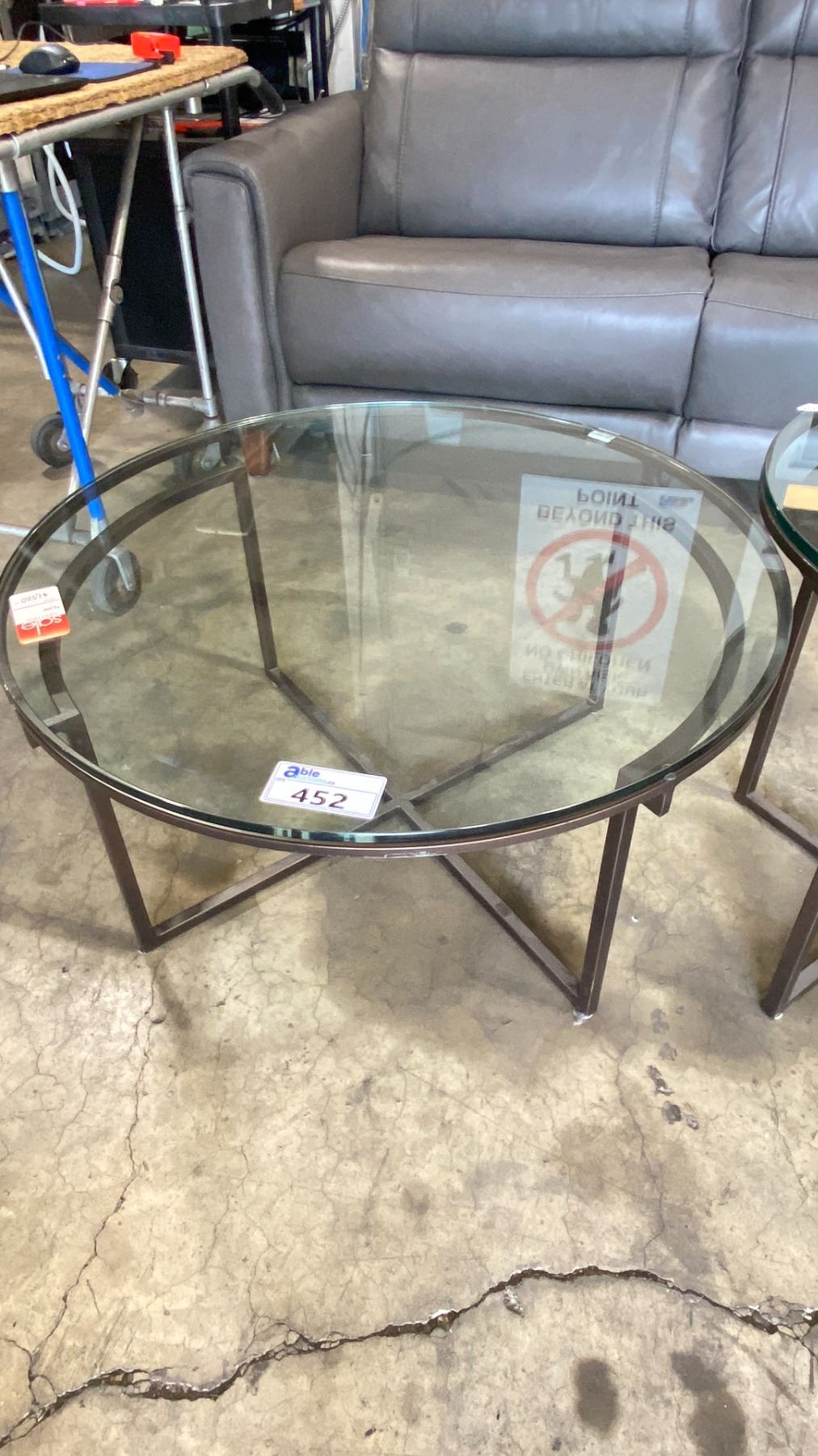 2PCS CHARCOAL METAL 36" ROUND DESIGNER GLASS TOP COCKTAIL TABLE WITH 24" ROUND END TABLE SET