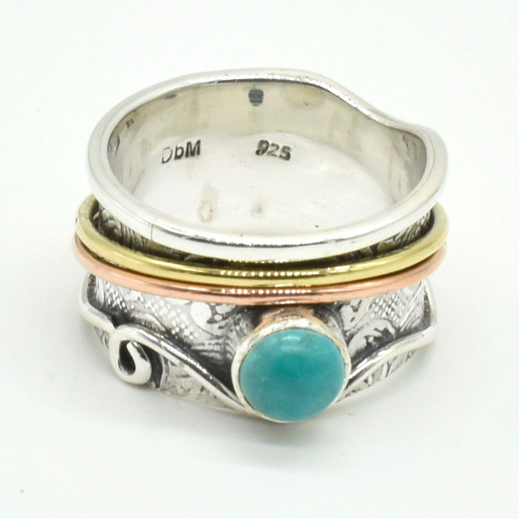 2TONED SILVER TURQUOISE(0.7CT) RING  SIZE 7.5