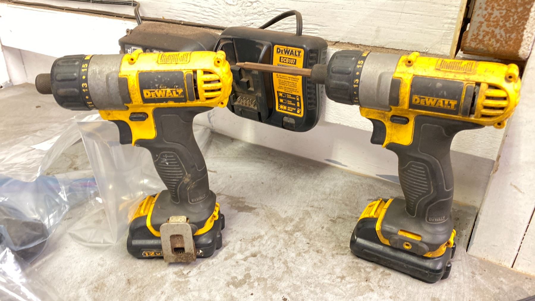 2X 12V DEWALT SCREW GUNS WITH TWO BATTERIES AND CHARGER