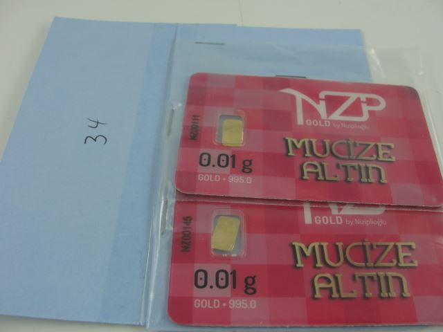 2X .995 FINE GOLD BULLION BARS. MINT SEALED, CERTIFIED AND SERIAL NUMBERED. TAX EXEMPT
