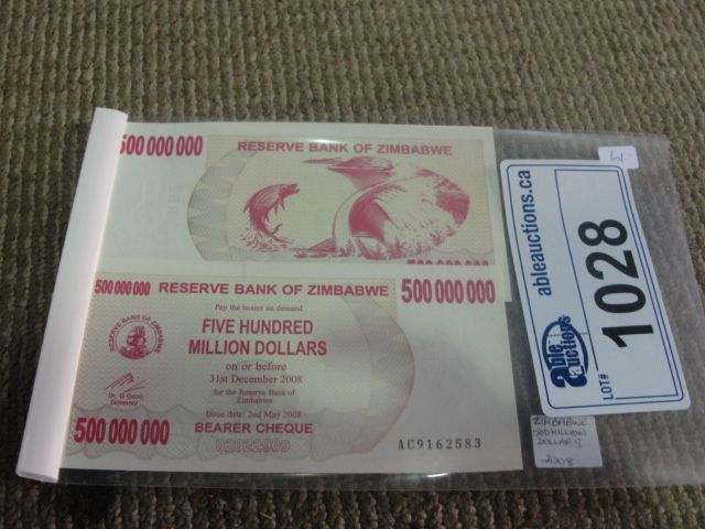 2X BANK OF ZIMBABWE 500,000,000 $ NOTE