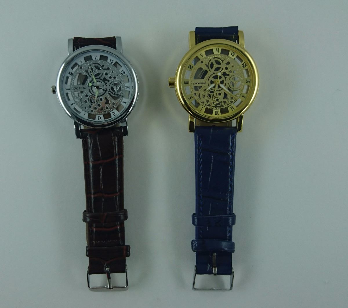2X NEW SKELETON STYLE 2 SIDED WATCHES. LEATHER STRAPS -WORK