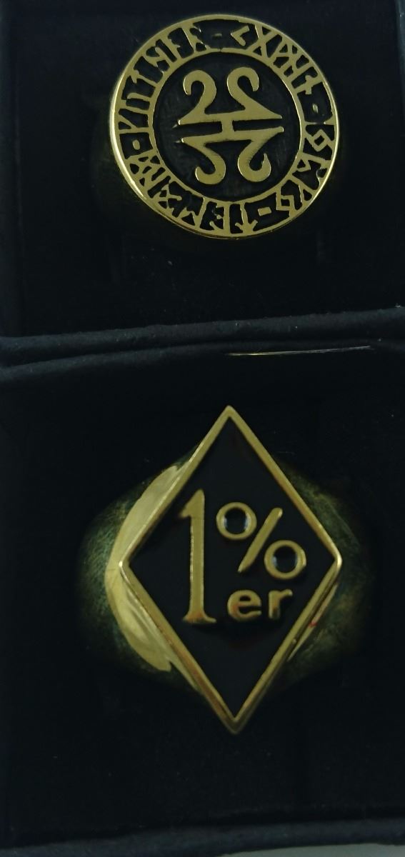 2X SOLID CAST BRONZE BIKER RINGS. ARTIST SIGNED