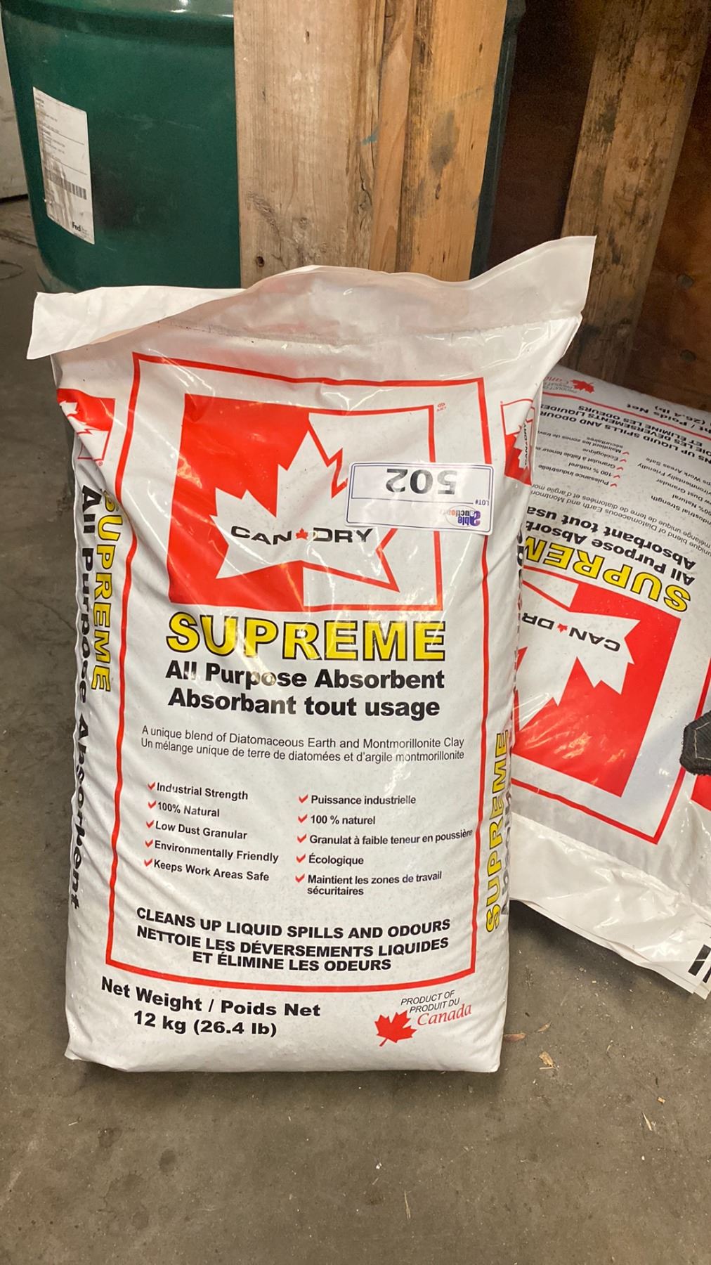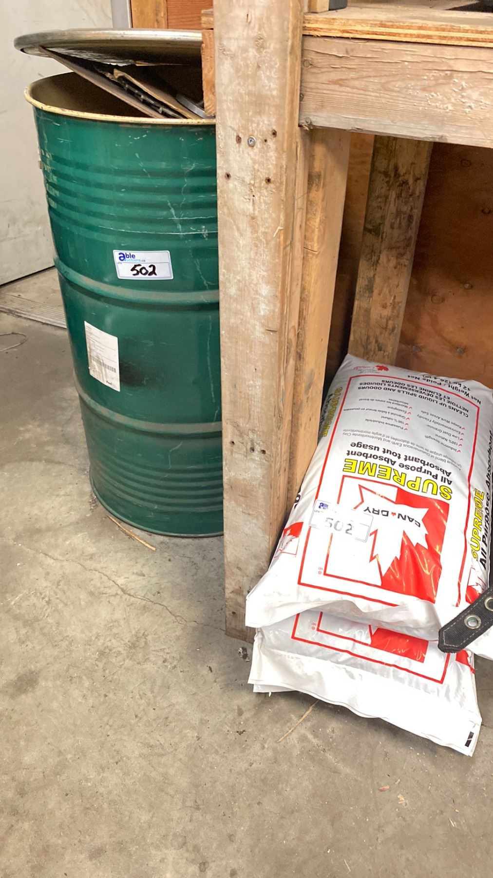 3 - 12KG BAGS OF CAN DRY SUPREME ALL PURPOSE ABSORBENT & BARREL OF ASSORTED MISCELLANEOUS