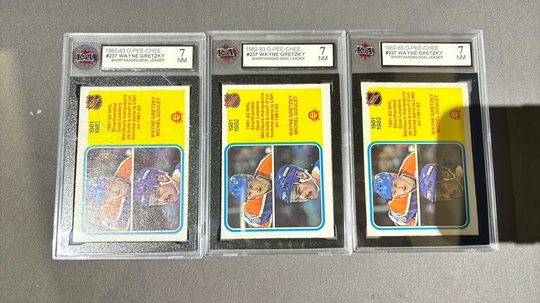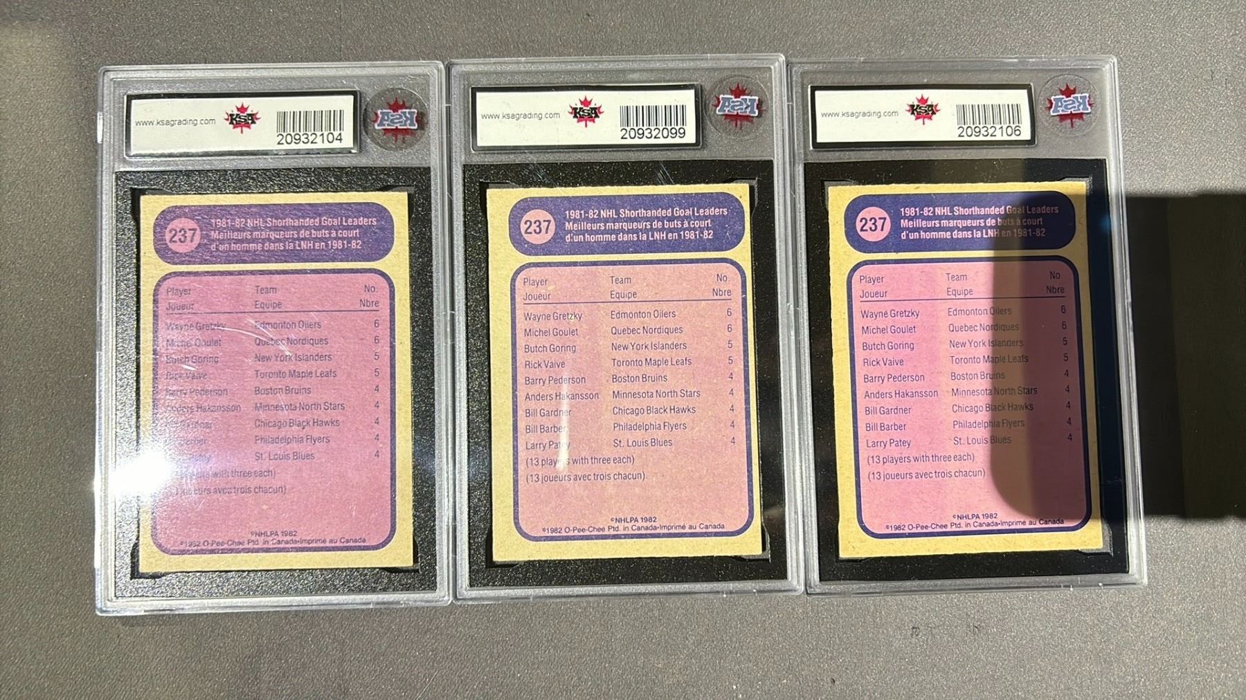 3 1982-1983 O-PEE-CHEE WAYNE GRETZKY SHORT HANDED GOAL LEADER #237, KSA GRADED - 7NM