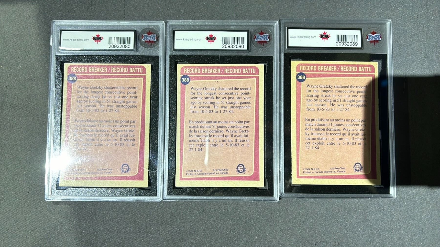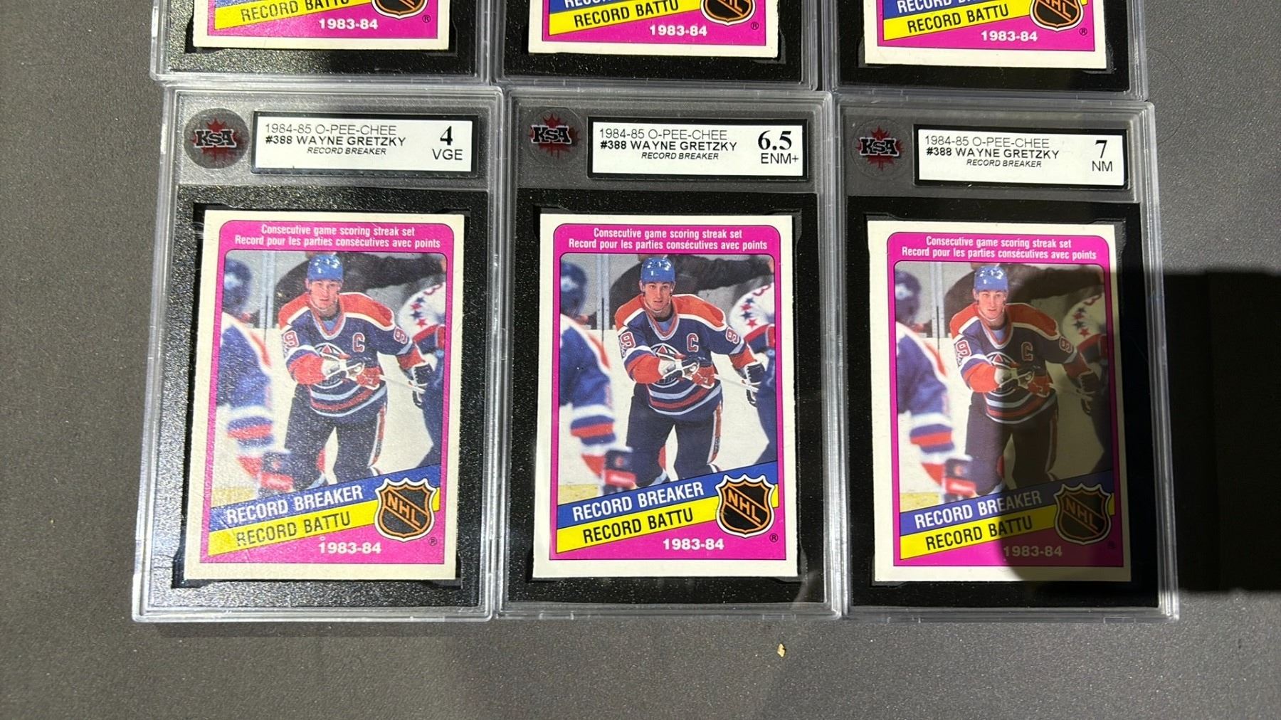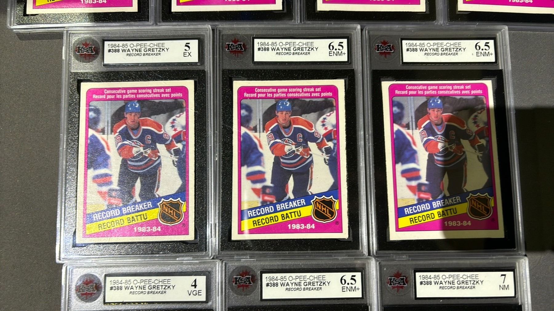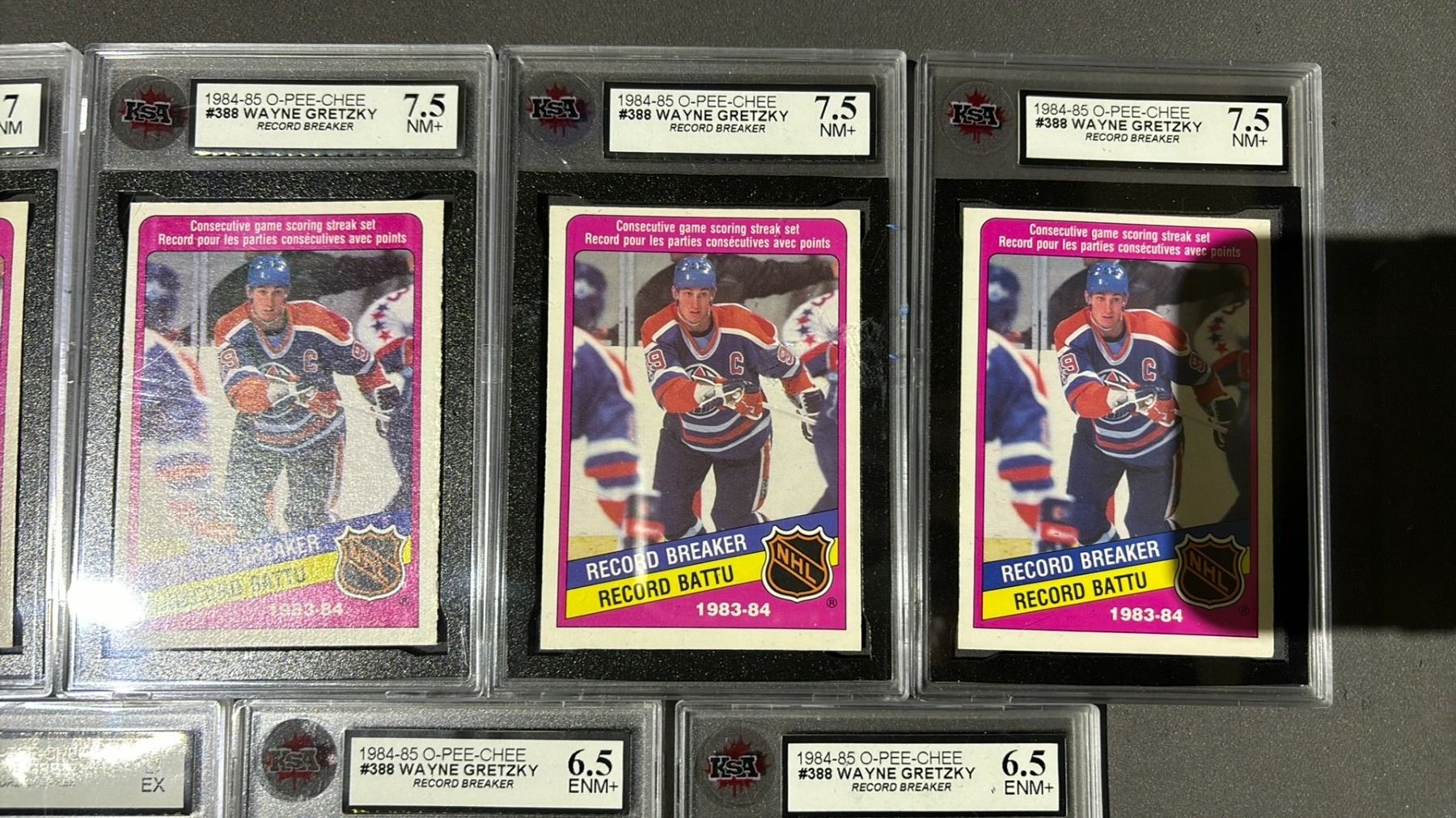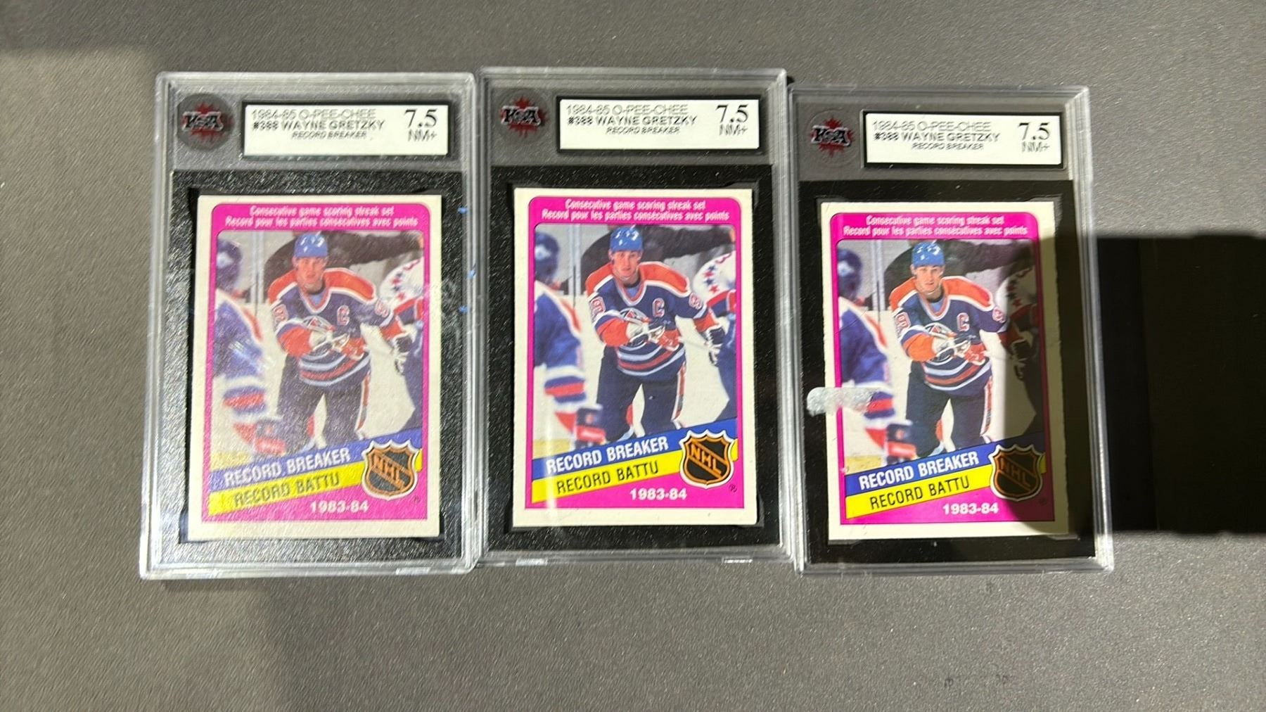 3 1984-1985 O-PEE-CHEE WAYNE GRETZKY RECORD BREAKER #388, KSA GRADED 7.5NM+