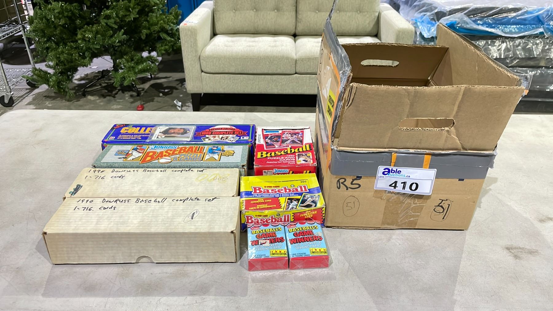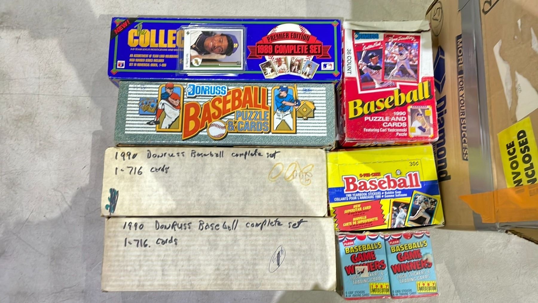 3 1990 DONRUSS BASEBALL SETS, 1-716 CARDS (COMPLETE) 1 1989 UPPER DECK BASEBALL SET, KEN GRIFFEY RC, 1-800 CARDS (COMPLETE) 1 1990 DONRUSS BASEBALL BOX, WITH 39 PACKS (FACTORY SEALED) 2 1987 FLEER BASEBALL GAME WINNERS LTD., 44 PLUS 6 CARDS (FACTORY SEALED) 1 1988 O-PEE-CHEE BASEBALL YEARBOOK STICKER BOX, 48 PACKS