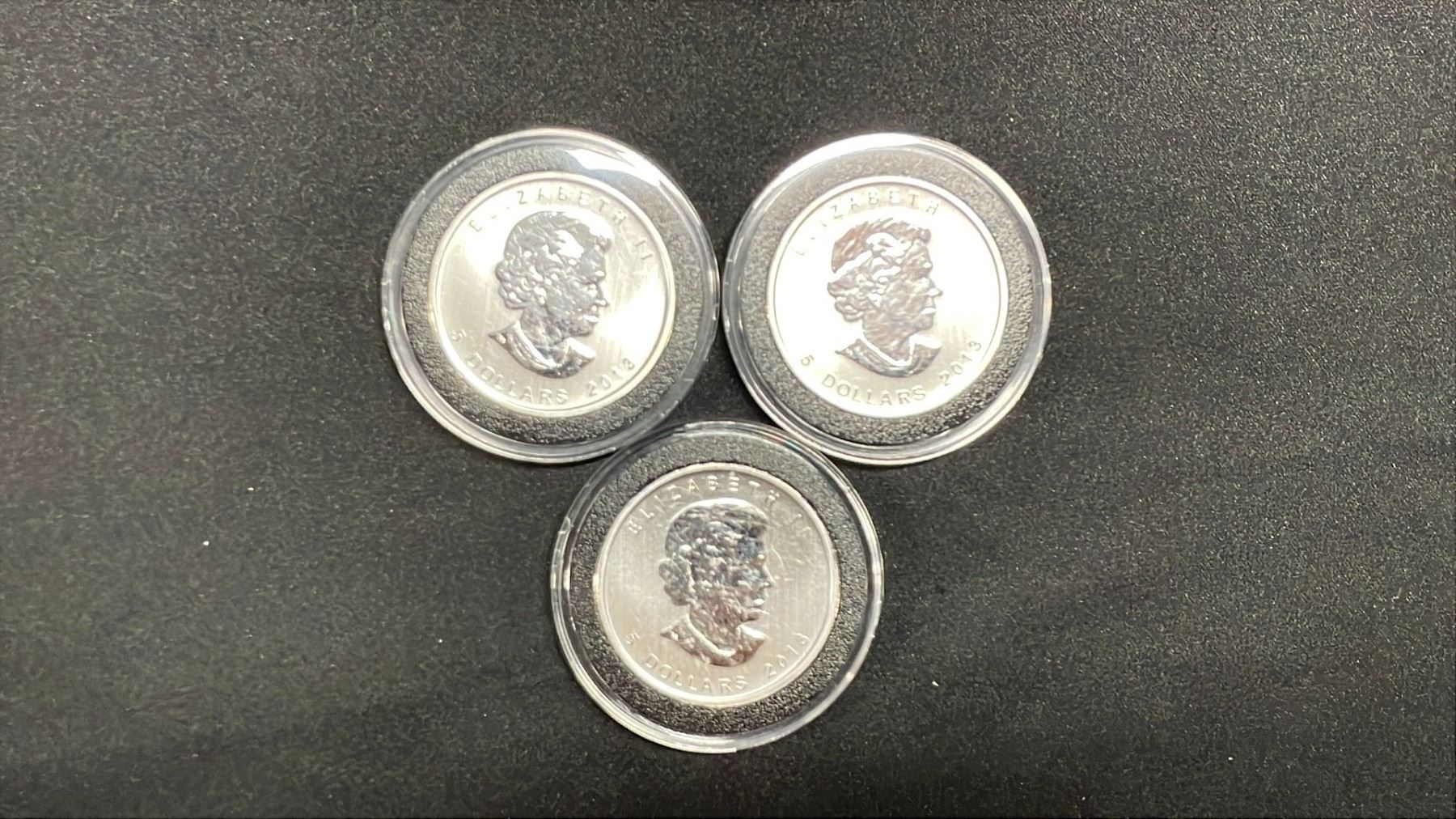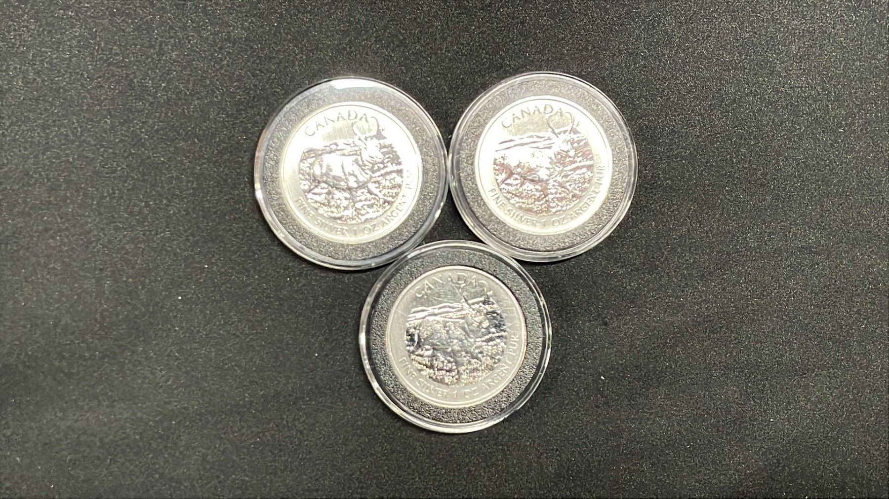 (3) 2013 CANADIAN ROYAL MINT 1 OZ SILVER $5 CARIBOU COINS