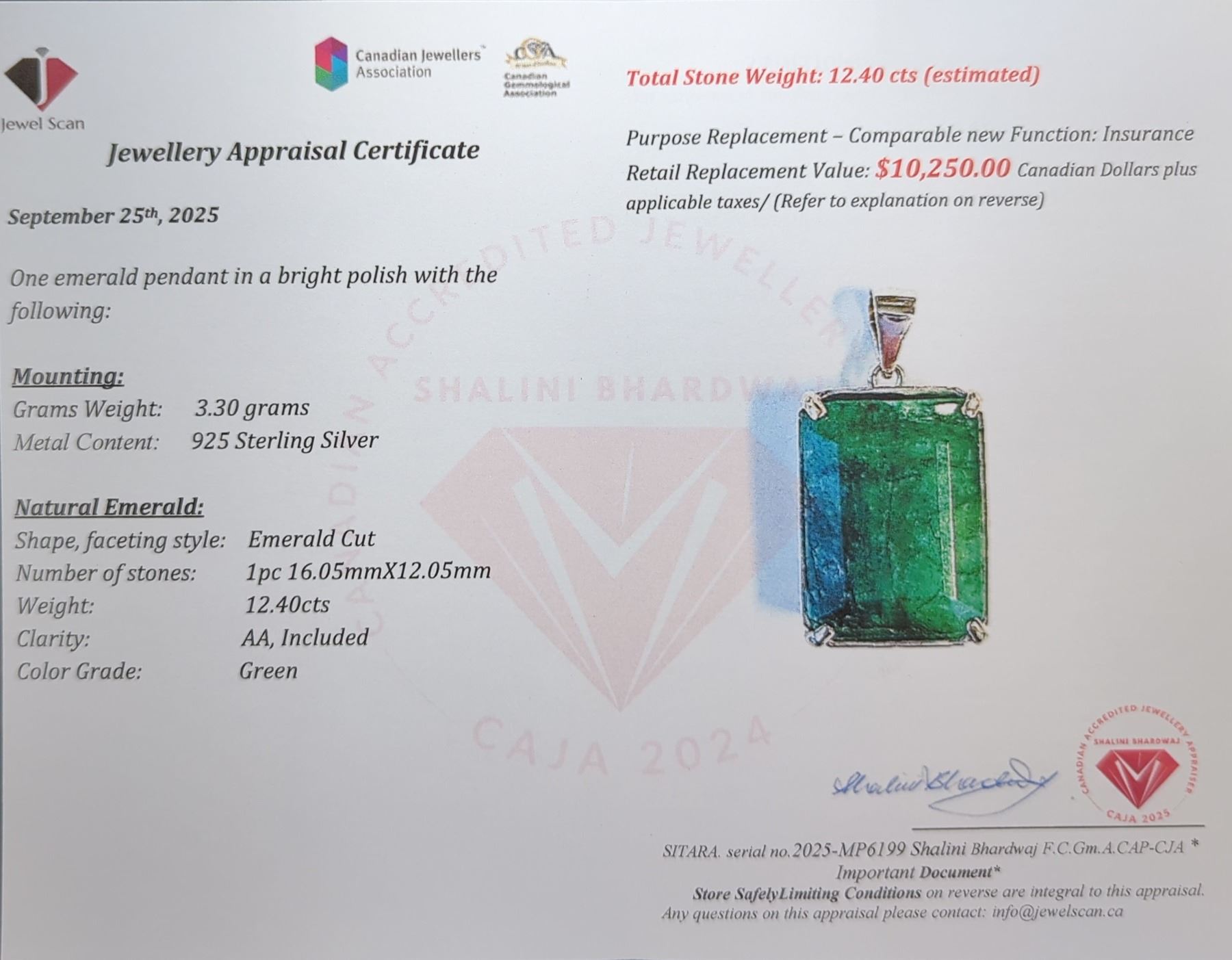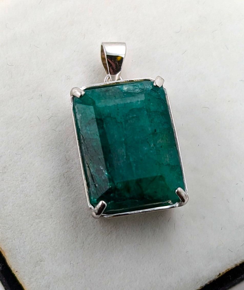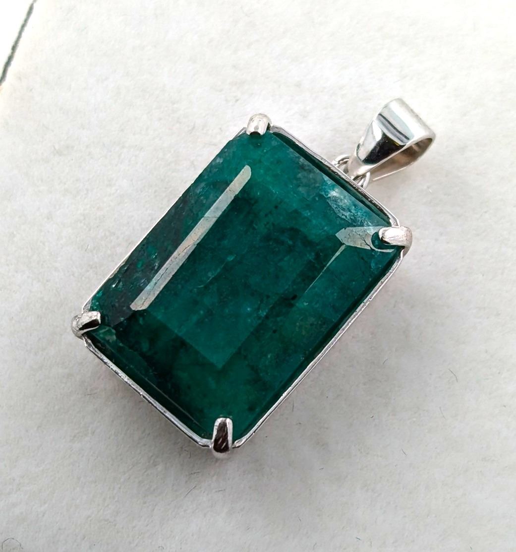 3.3 CT CERTIFIED SILVER EMERALD GEMSTONE PENDANT ($10,250 APPRAISAL, APPRAISAL NOT GUARANTEED)
