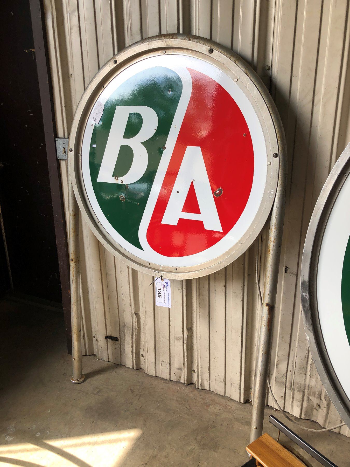 3'3" ROUND BA GAS STATION SIGN CIRCA 1950'S WITH ORIGINAL METAL FRAM