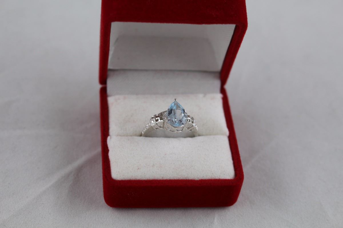 3.5CT BLUE TOPAZ AND DIAMOND RING, PEAR CUT, 2 DIAMOND, INCLUDES $400 CERTIFICATE