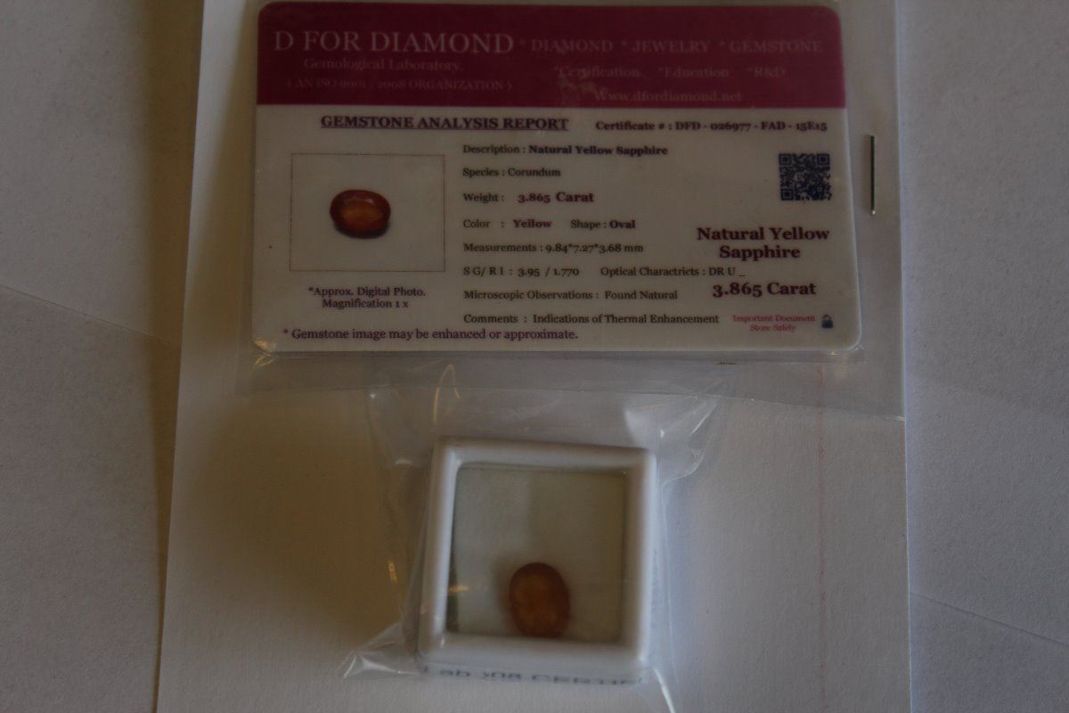 3.85 CARAT OVAL CUT NATURAL YELLOW SAPPHIRE INCLUDES CERTIFICATE & SEALED GEM JAR  APPROX RETAIL $500.00