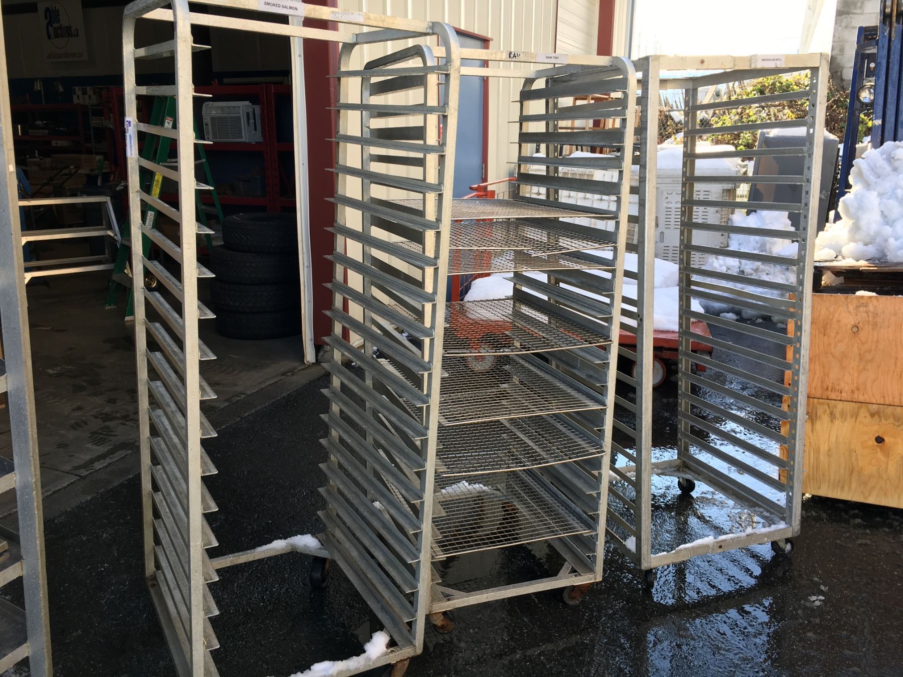 3 ALUMINUM 2' X 2' COMMERCIAL FOOD IND. ROLLING RACKS