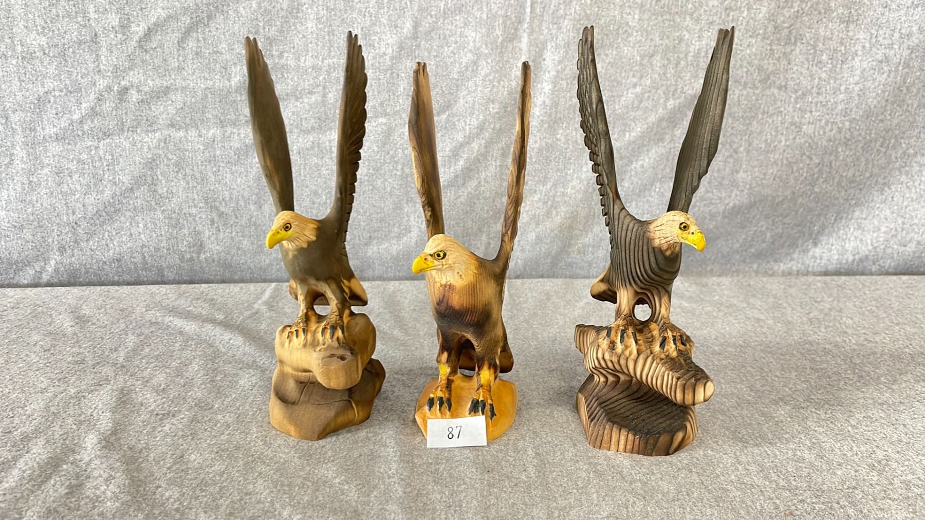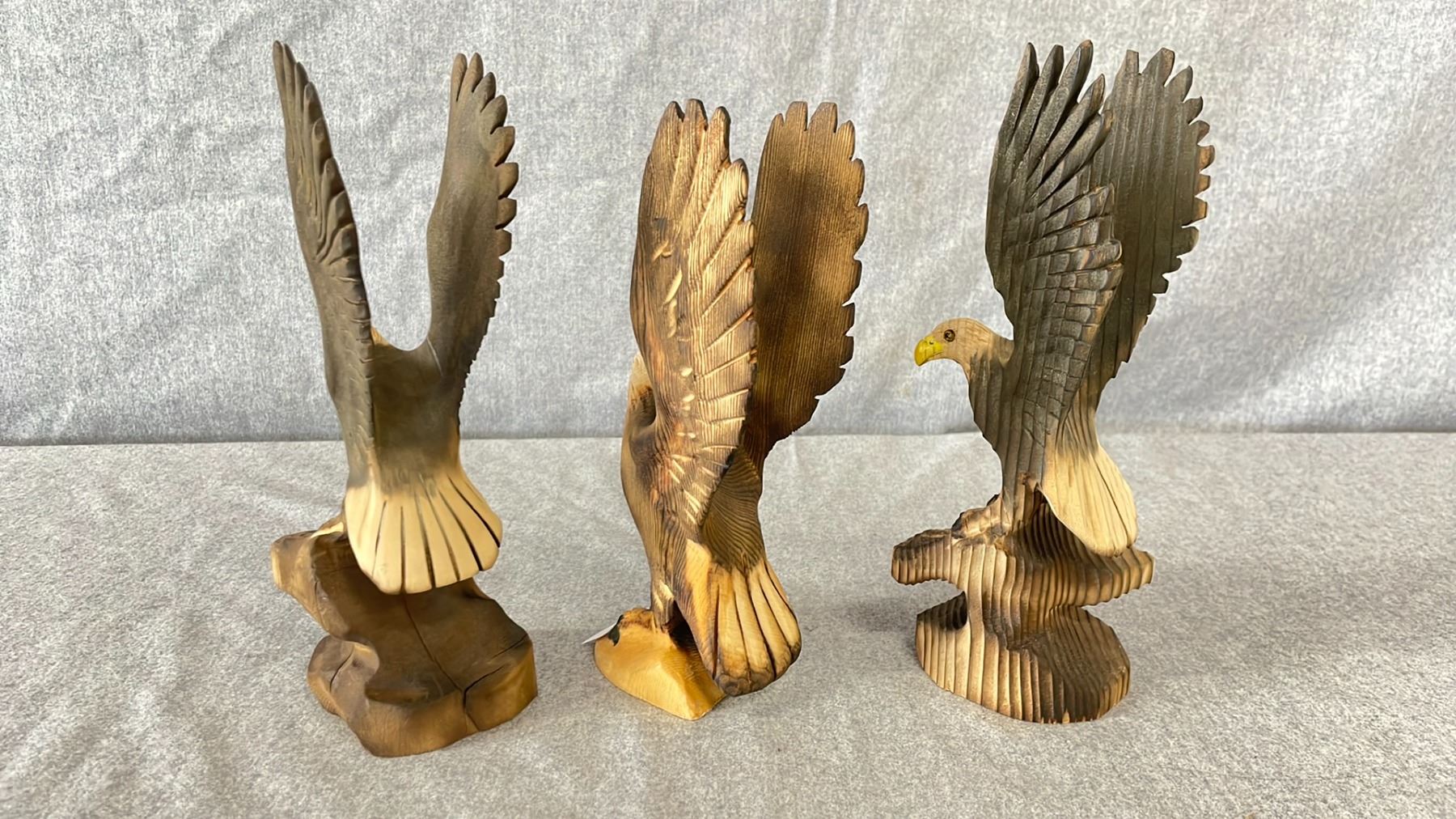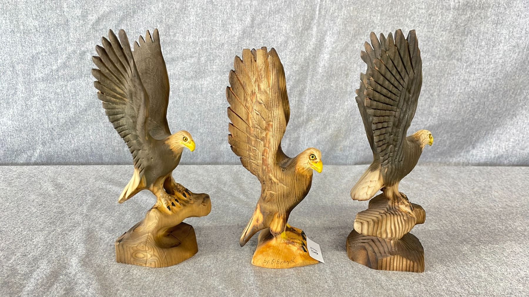 3 ASSORTED ARTIST SIGNED BALD EAGLE CARVINGS