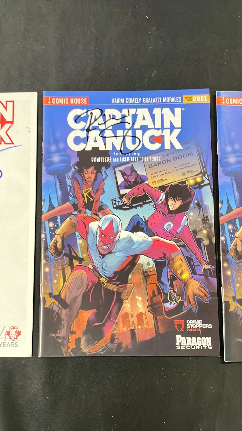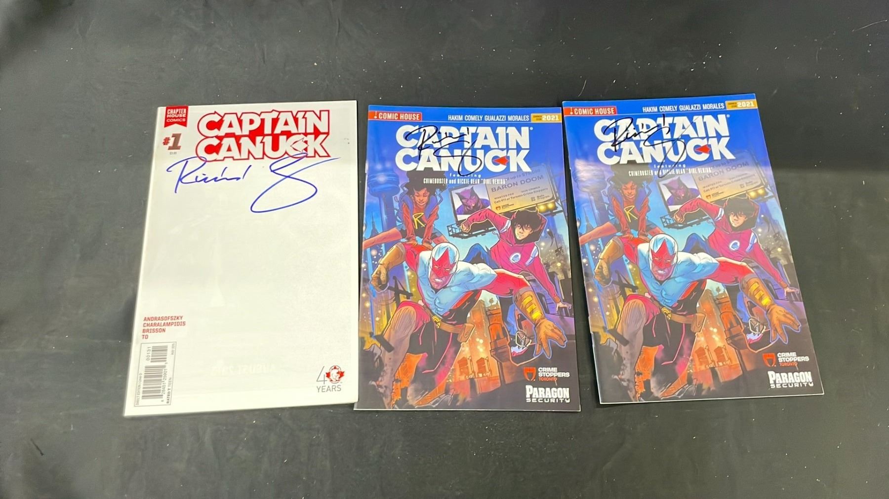 3 ASSORTED AUTOGRAPHED CAPTAIN CANUCK COMIC BOOKS
