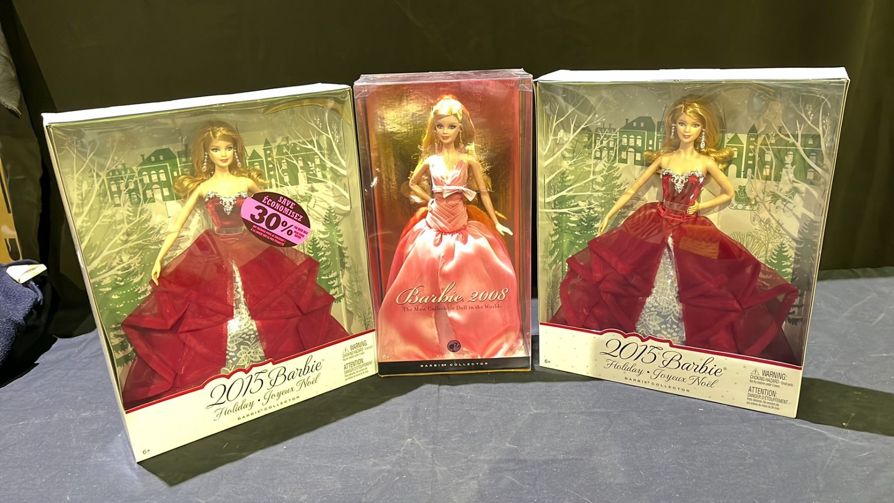 3 ASSORTED BARBIE DOLLS INCLUDING; BARBIE 2008 & 2015 HOLIDAY BARBIE
