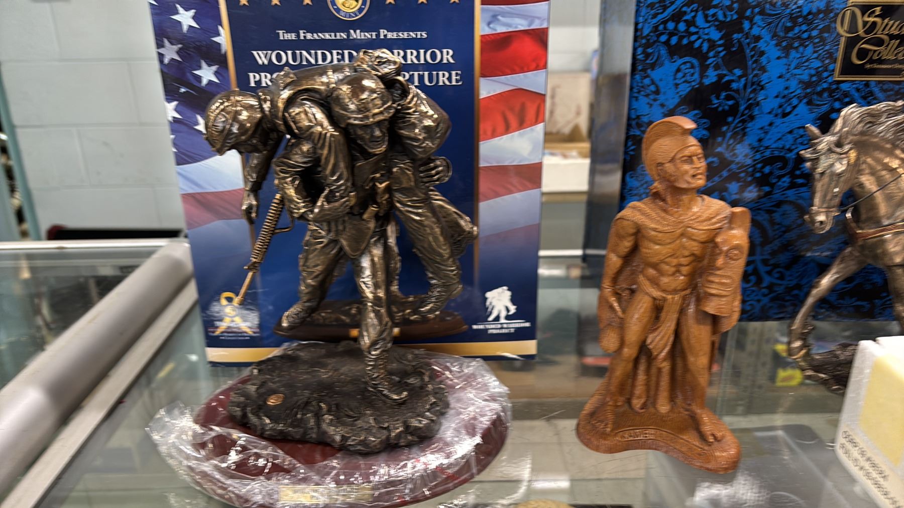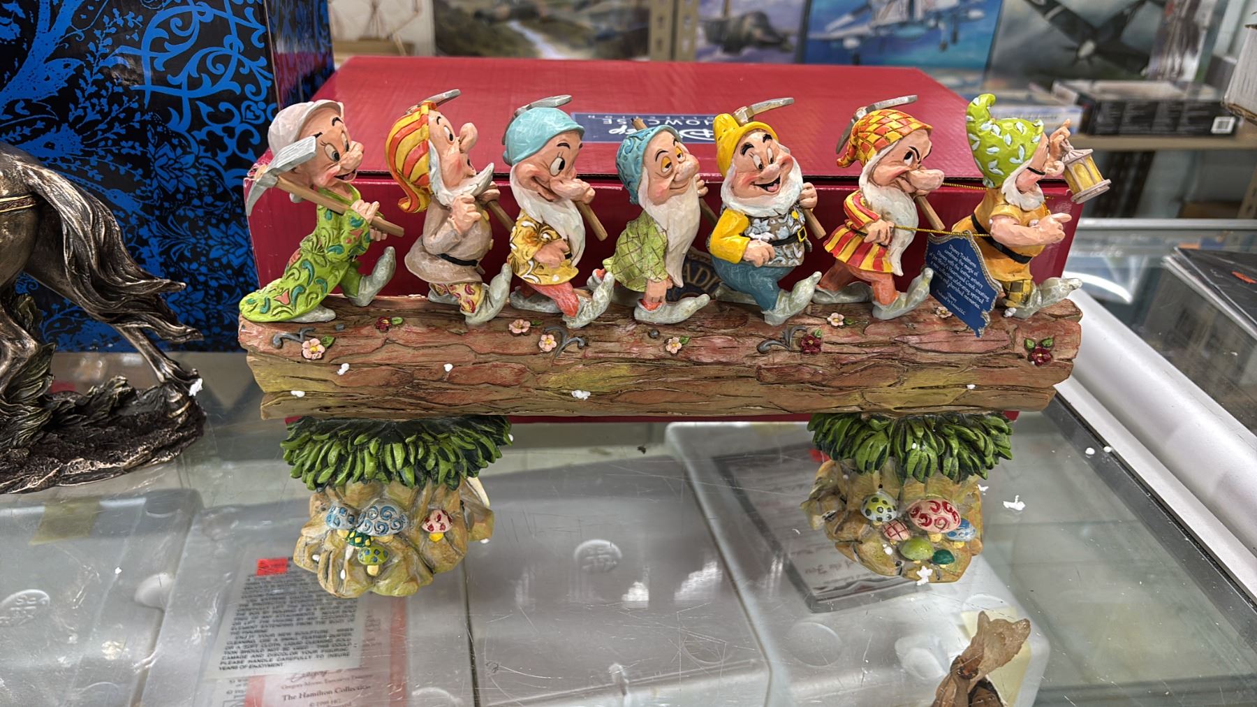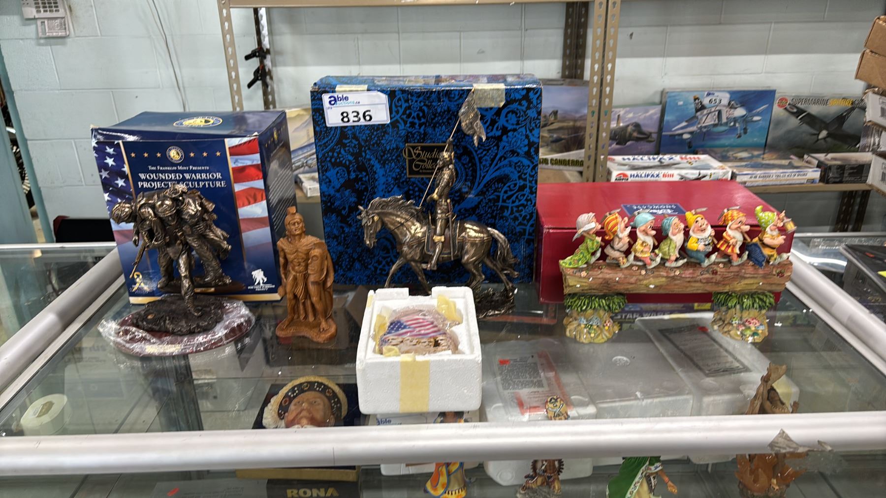 (3) ASSORTED COLLECTIBLE MILITARY STATUETTES, DISNEY "THE SEVEN DWARVES" FIGURINE & MORE