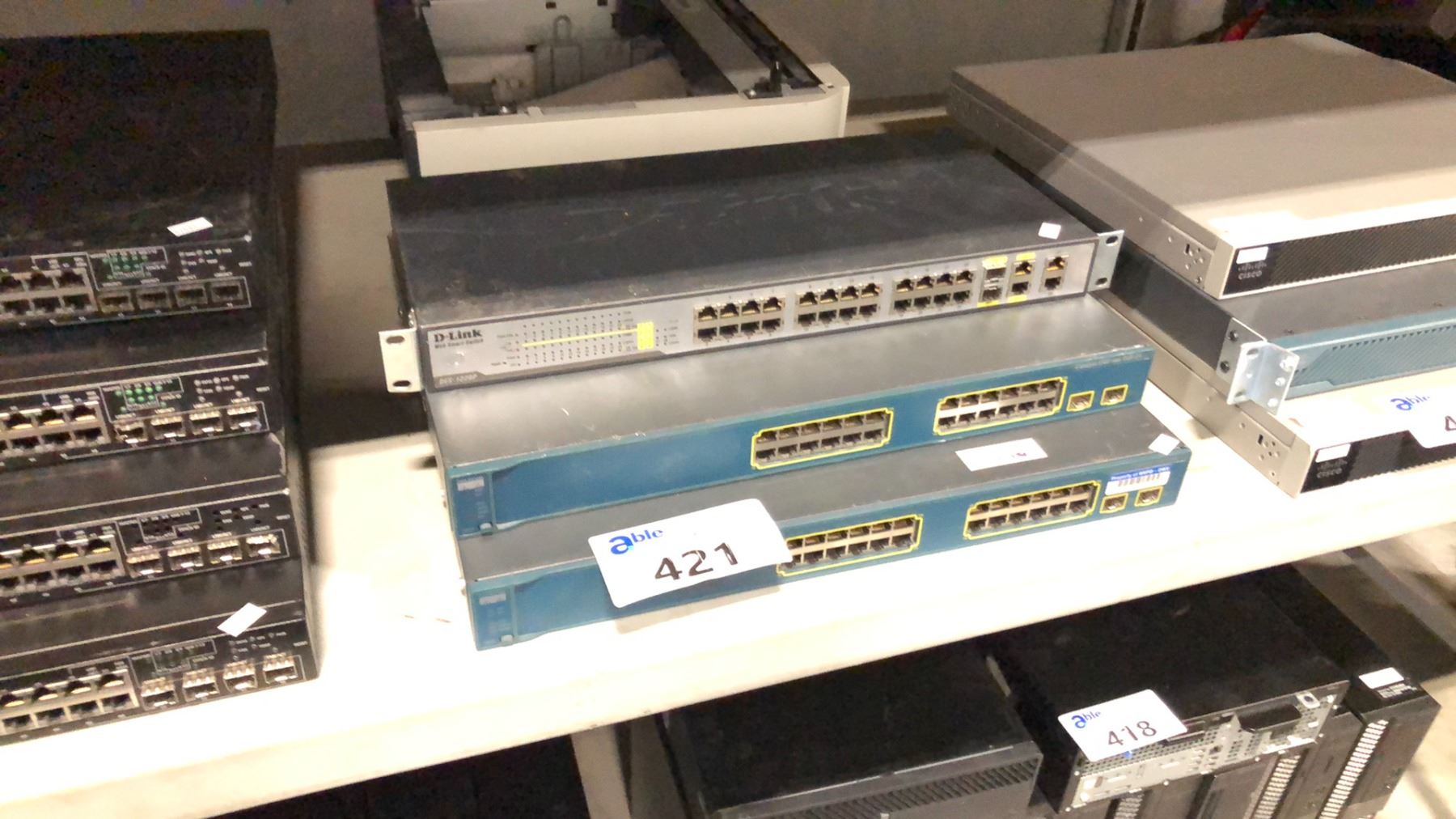 3 ASSORTED NETWORK SWITCHES INCL D-LINK DES-1228P, CISCO CATALYST 3560 POE-24