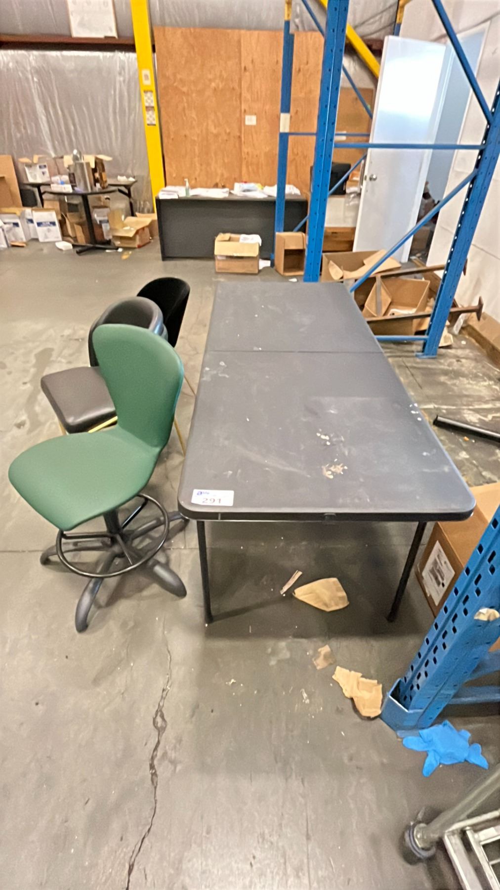 3 ASSORTED OFFICE CHAIRS AND 1 BLACK FOLDING TABLE
